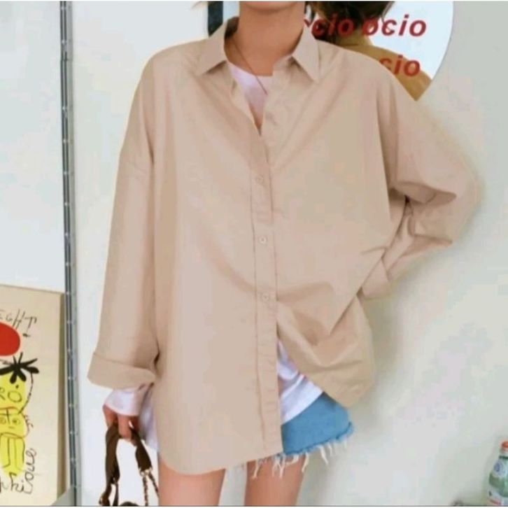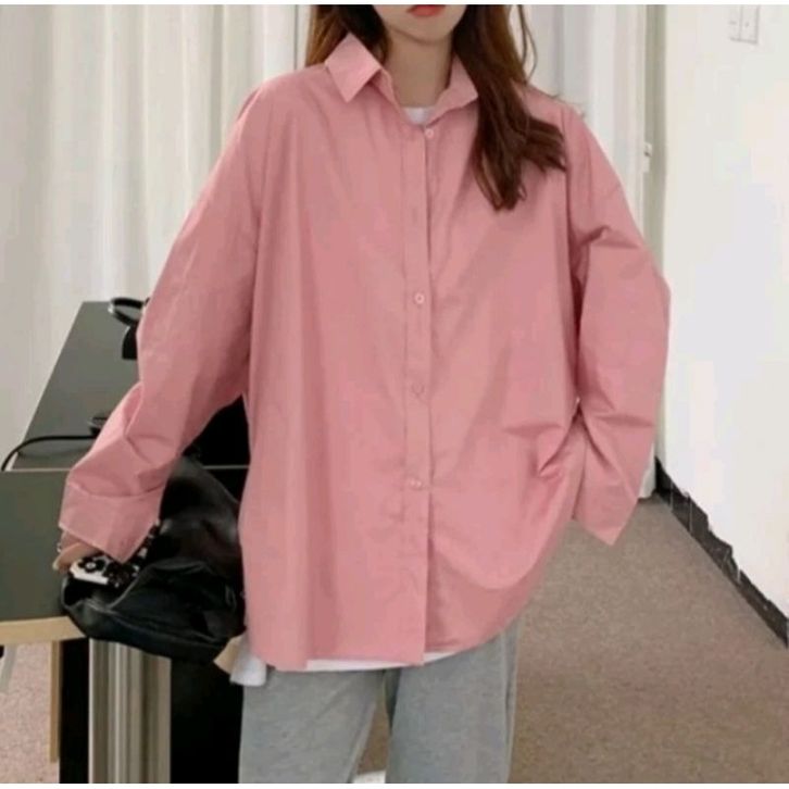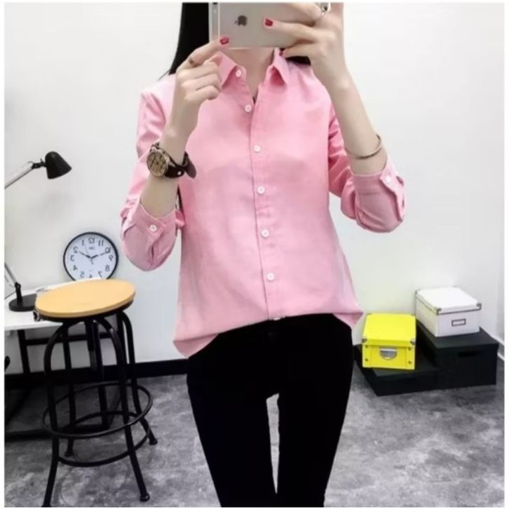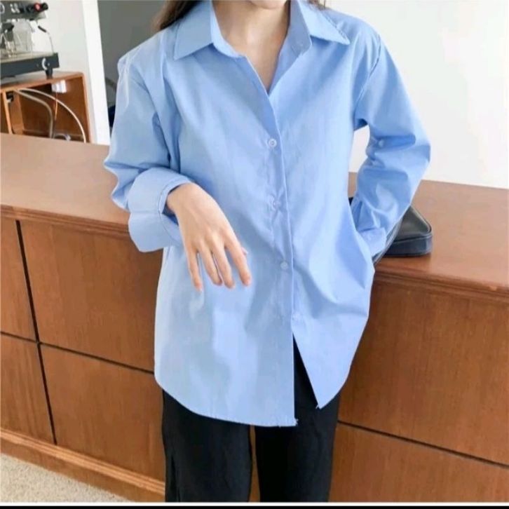 Kemeja Wanita Katun Basic Lengan Panjang Kasual