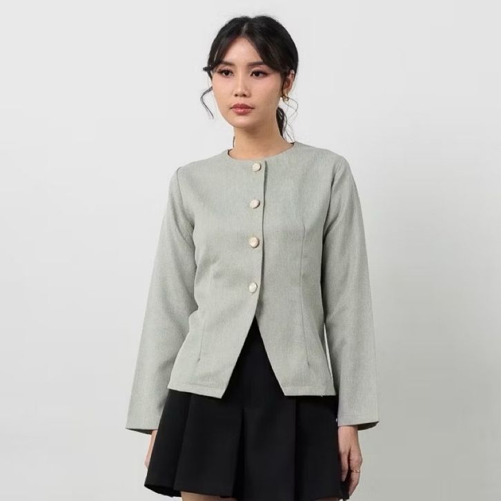 Atasan Lengan Panjang Hijab Friendly Blouse -Blazer Wanita Korean Look