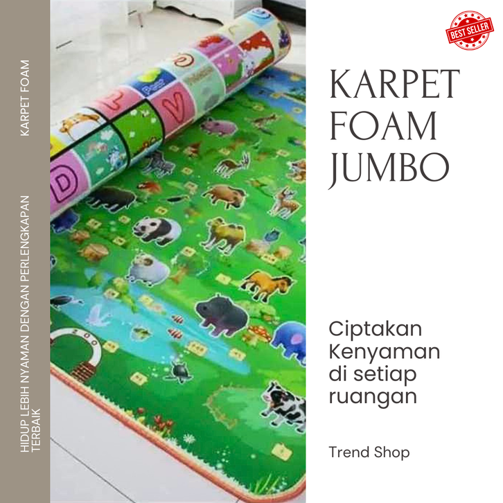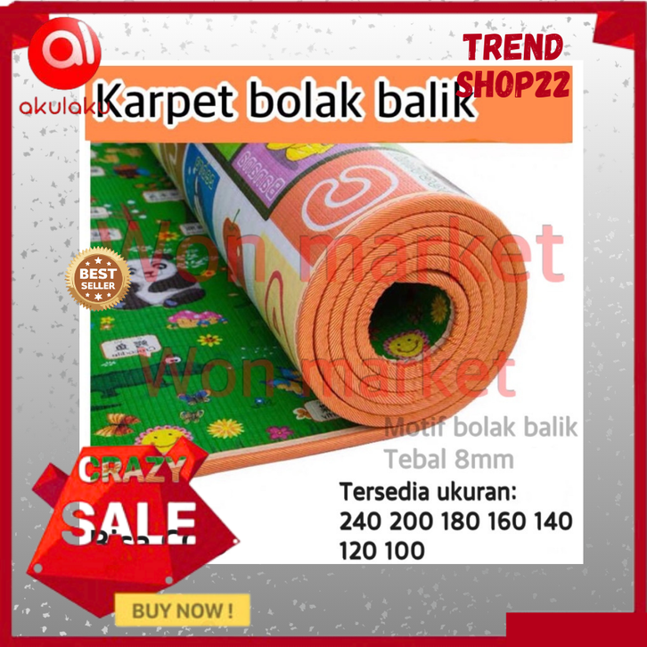 [Mall]Karpet Foam Jumbo Lipat Motif Bolak-Balik | Tikar Plastik PE Tebal & Empuk | Karpet Lantai Karakter Anak
