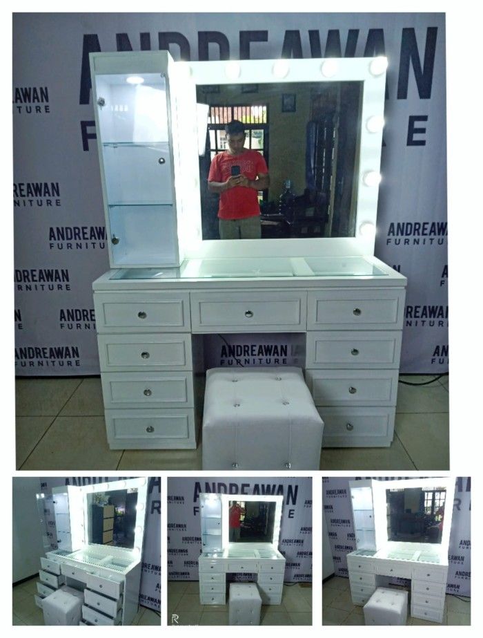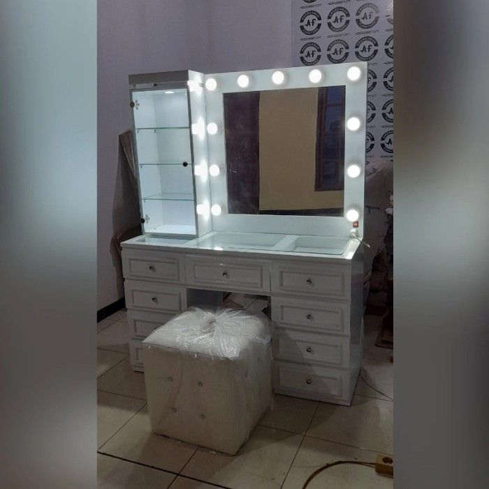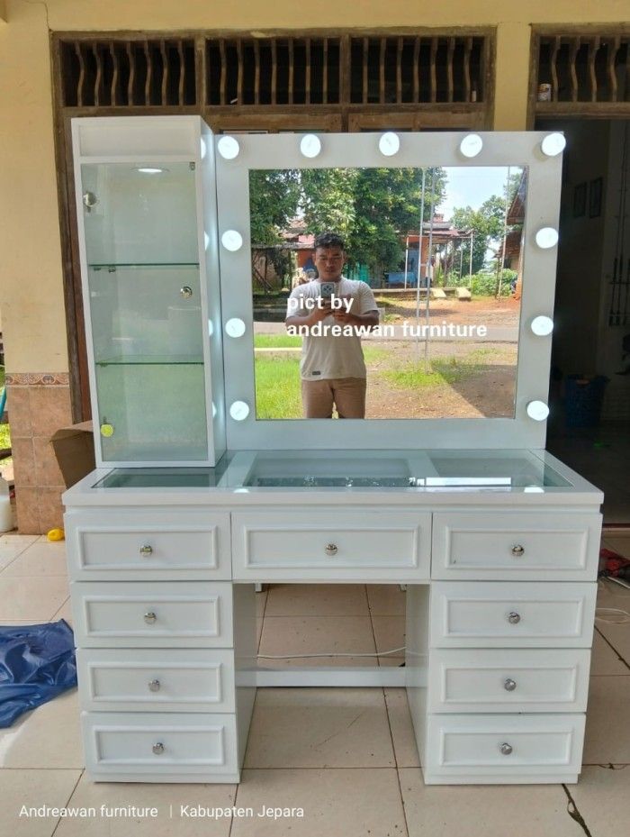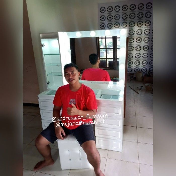 lemari meja rias putih cat duco - meja rias laci - cermin rias lampu - MJRIAS+DUDUKAN