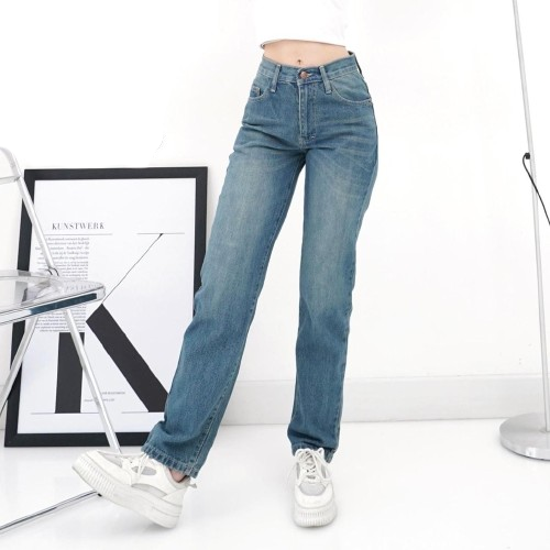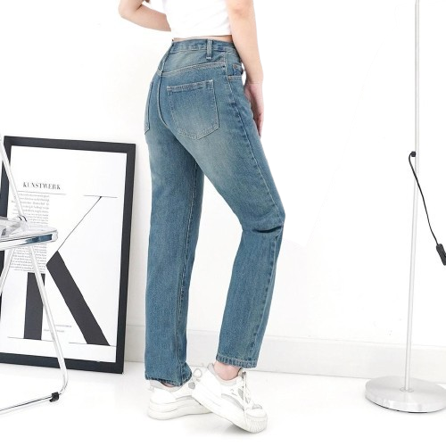 Celana Jeans Wanita - Kargo Cutbray Jeans Highwaist Wanita Streetch