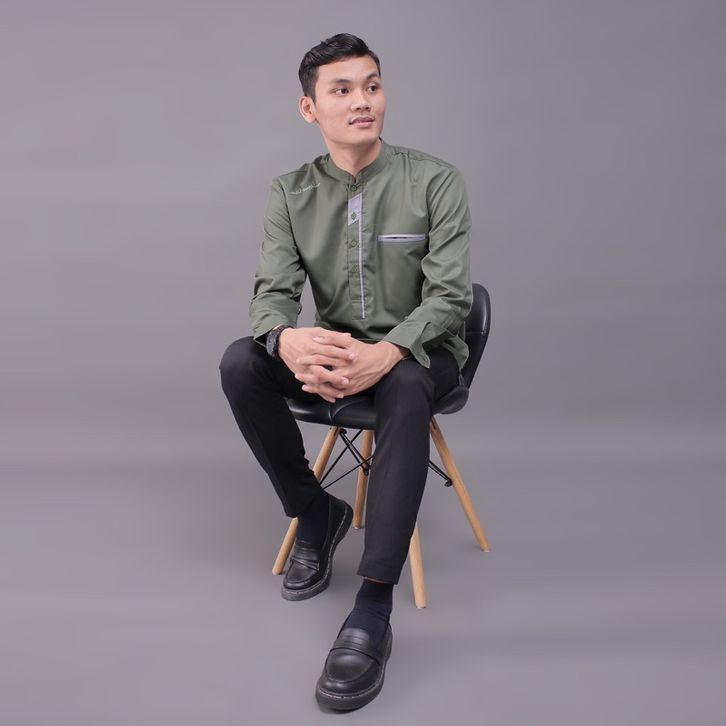 Kemeja Koko Pria Elrumi Lengan Panjang Motif Abizaar Warna Sage