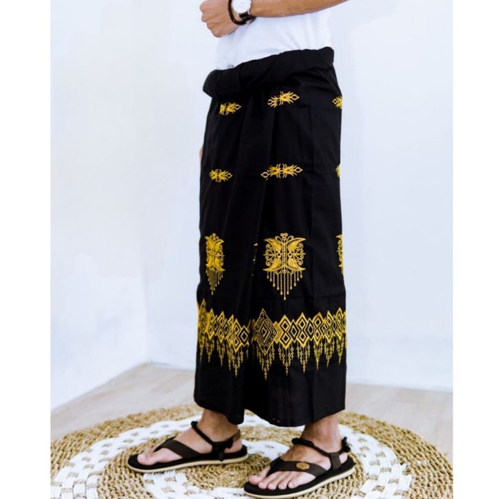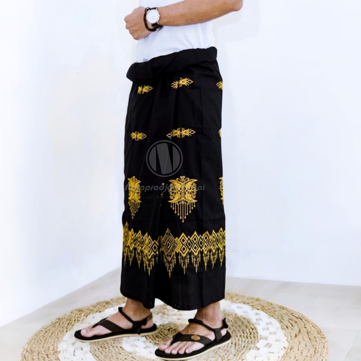 Wadimor - Sarung Bordir Pintu Aceh Motif Timbul Keren Elegan Sarung Hitam Sholat Santri Dewasa N003