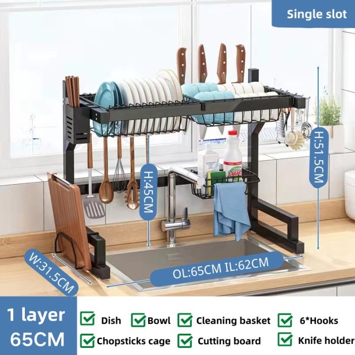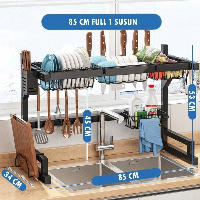RAK PIRING WASTAFEL PORTABLE 2 SUSUN STAINLEES STEEL ANTI KARAT 85CM - 65 CM 1 SUSUN