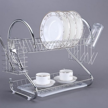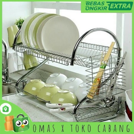 RAK PIRING DAPUR STAINLESS STEEL CHROME 2 SUSUN TINGKAT DISH DRAINER