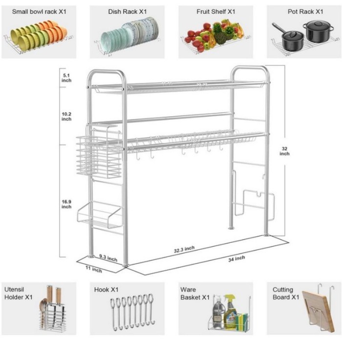 RAK WASTAFEL CUCI PIRING STAINLESS STEEL RAK DAPUR RAK PIRING BESAR