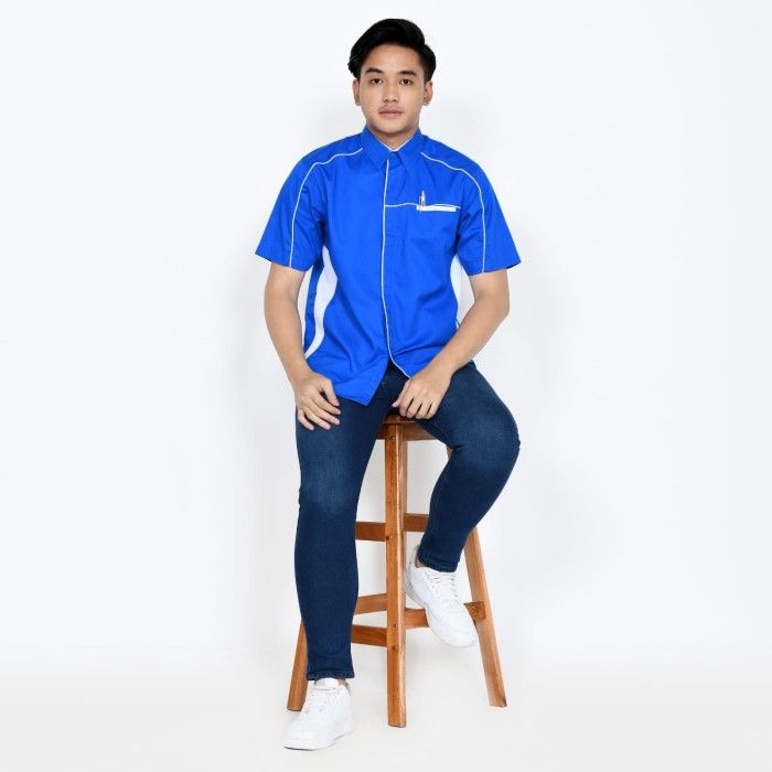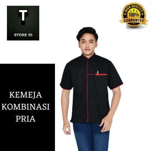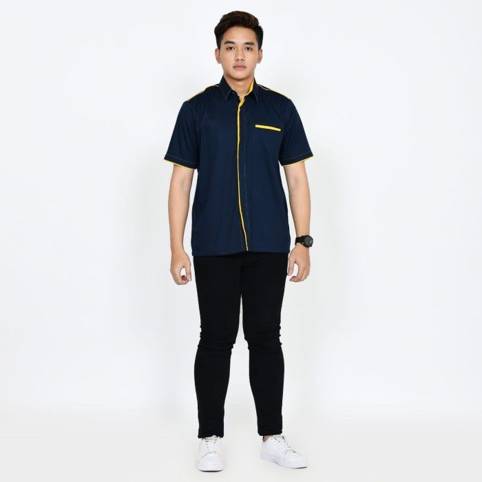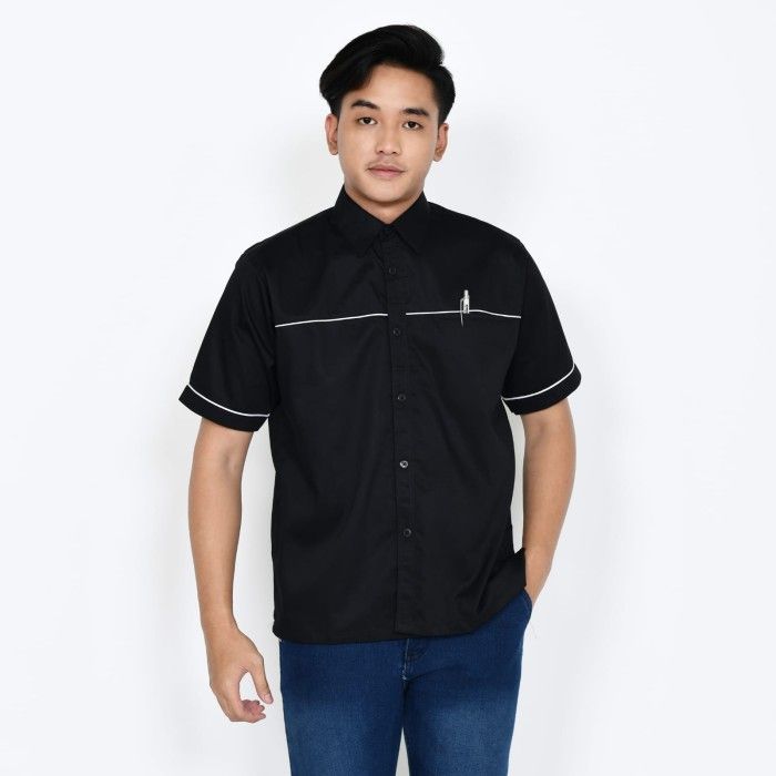 Baju pria kombinasi lis lengan pendek/seragam baju kerja pria