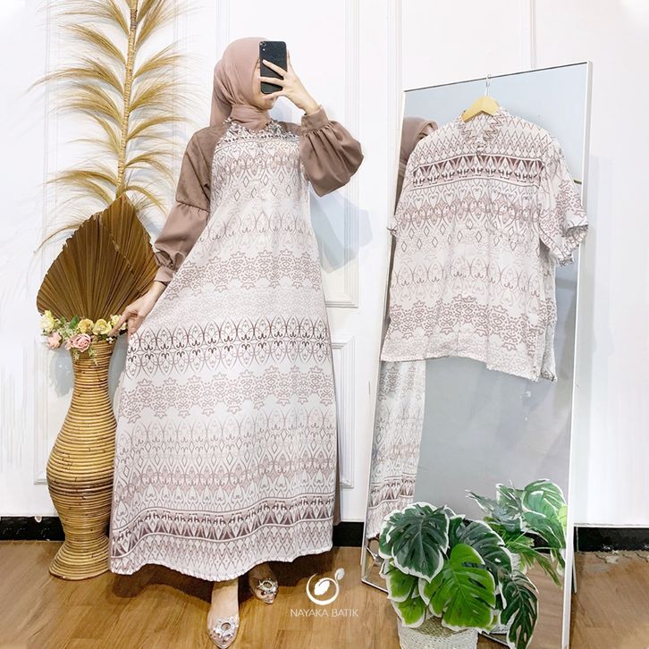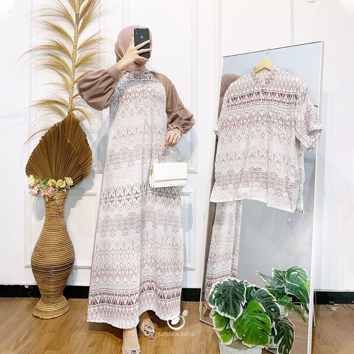 (BUSUI FRIENDLY) NEW ARRIVAL NAYA(BUSKA BATIK - Couple Gamis Zahwa Spesial Baju Lebaran 2025 Dress Wanita Busui Friendly