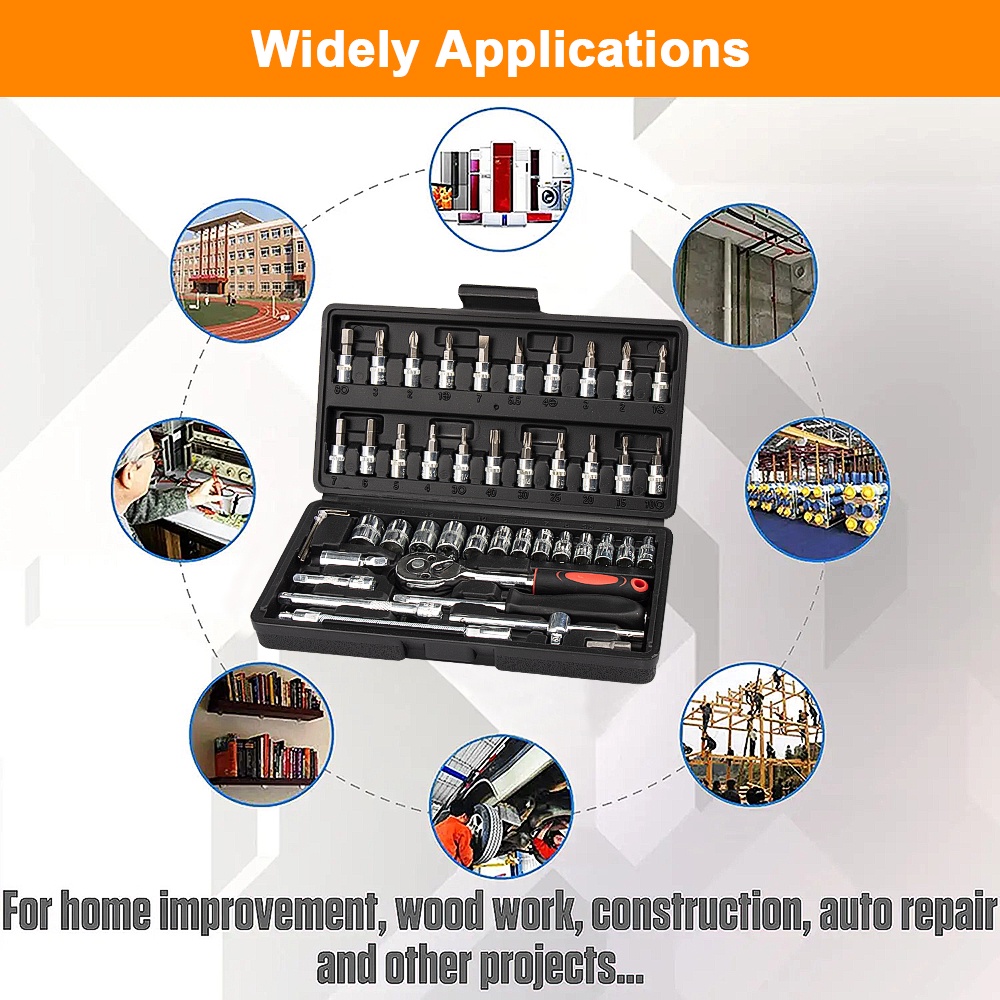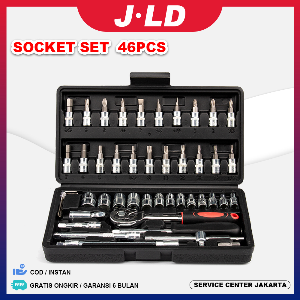 JLD 46PCS MURAH SOCKET WRENCH PAS SOCKET SET 1/4 CAR REPAIR TOOL LENGKAP SOCKET TOOL KIT PAS