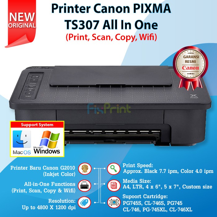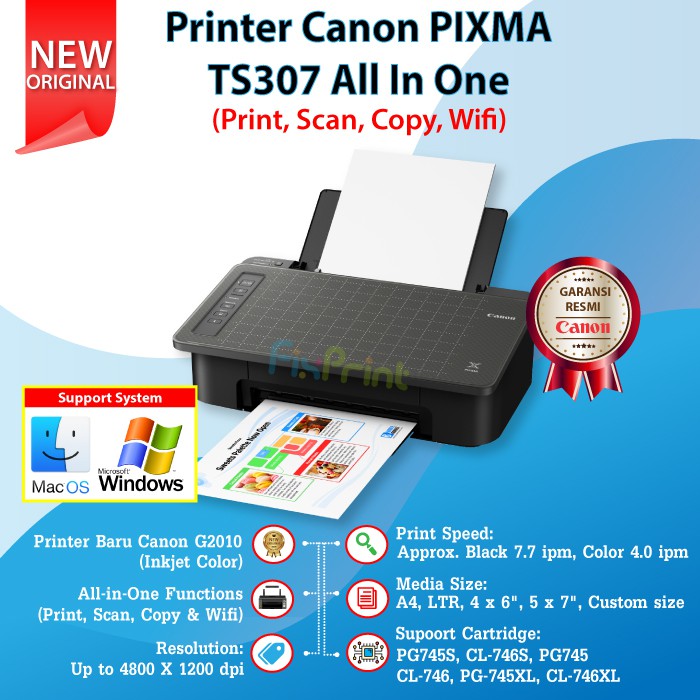 PRINTER CANON PIXMA TS307 PRINT SCAN COPY WIFI WIRELESS ALL IN ONE