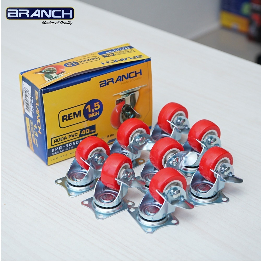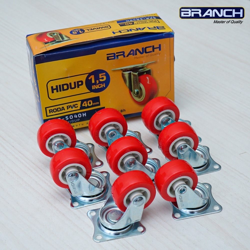 RODA CASTER ETALASE TROLI MERAH 8 PCS PVC NYLON 1.5 INCHI HIDUP, RODA TROLY ETALASE / RODA LEMARI