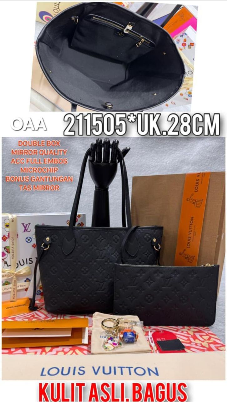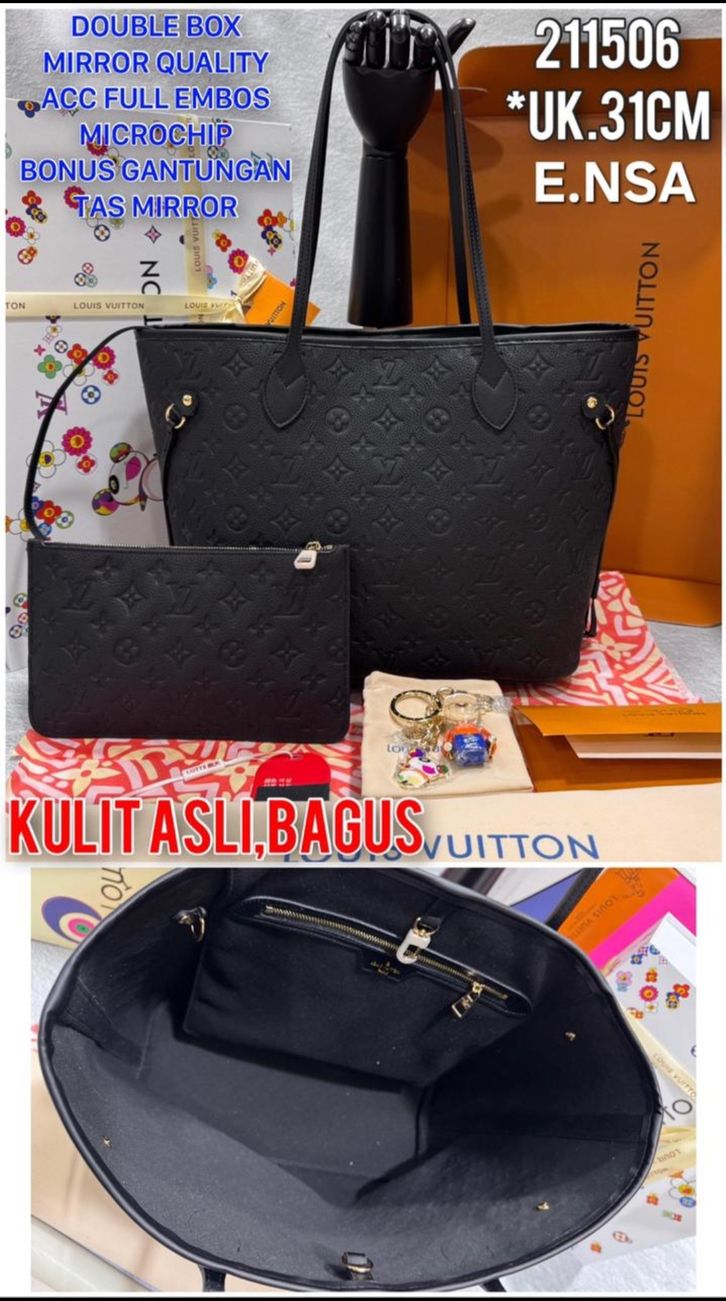 TAS WANITA LV NEVERFULL EMPREINTE KULIT ASLI MIRROR VVIP/TAS ELPONG TOTE 28CM 31CM/TOTEBAG TAS BRANDED TERBARU