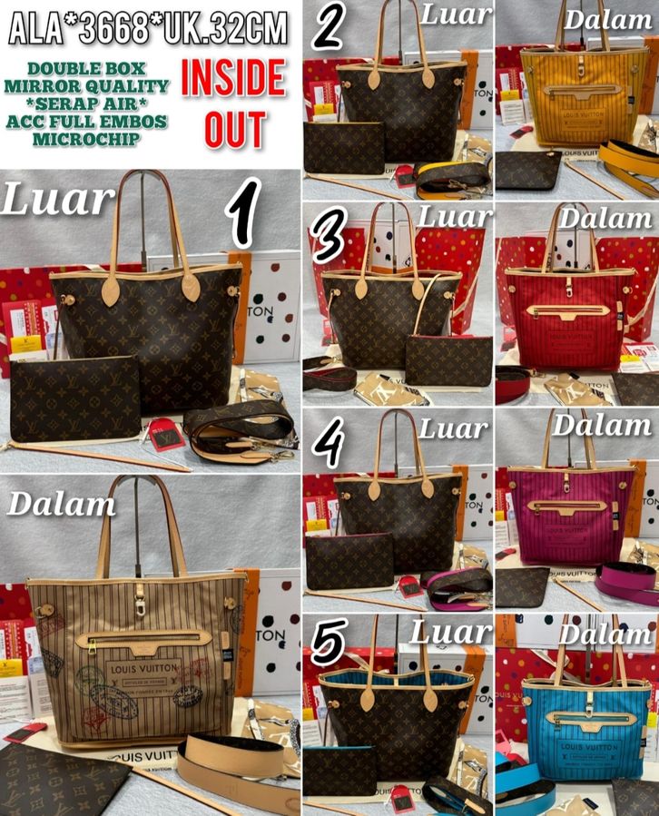 TAS LV NEVERFULL REVERSIBLE KULIT ASLI MIRROR VVIP/TAS WANITA ELPONG TOTE 32CM/TOTEBAG/TAS BRANDED PROMO