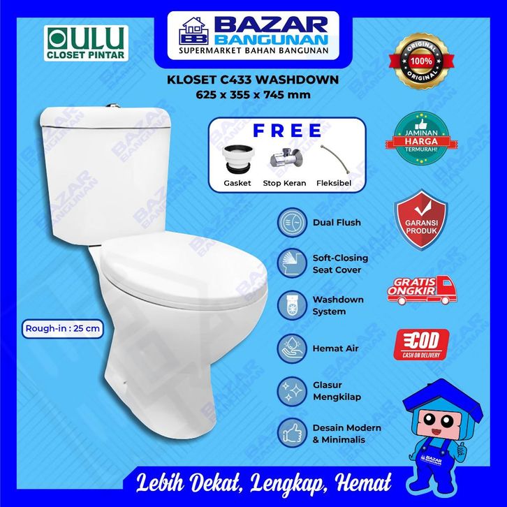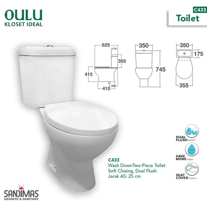Oulu Closet Kloset Toilet Duduk C433 Two Piece Dual Flush Soft Close Closing Wash Down AS 25 Toto