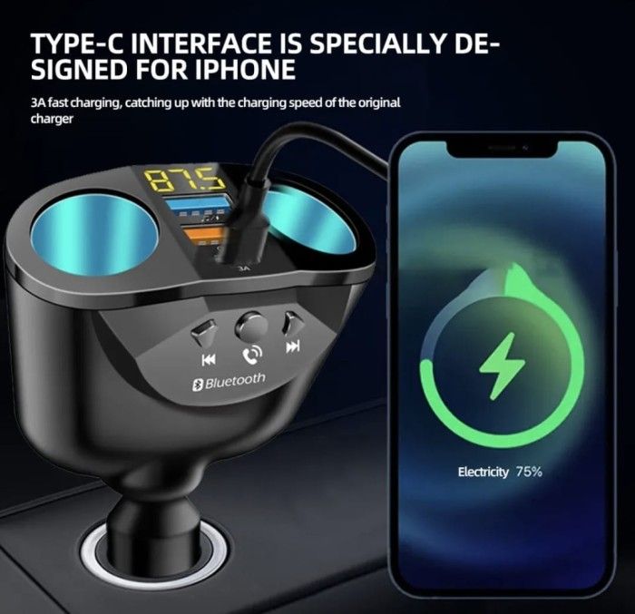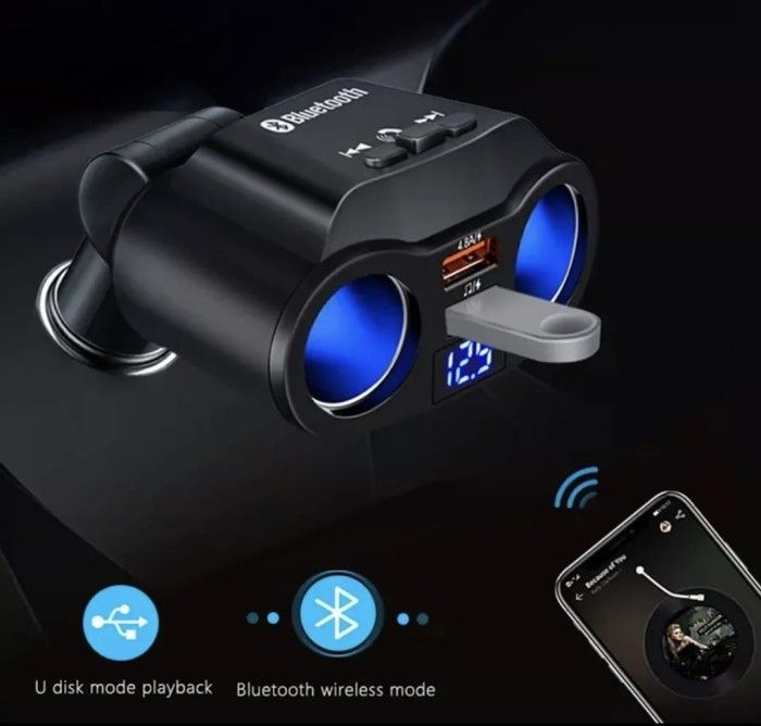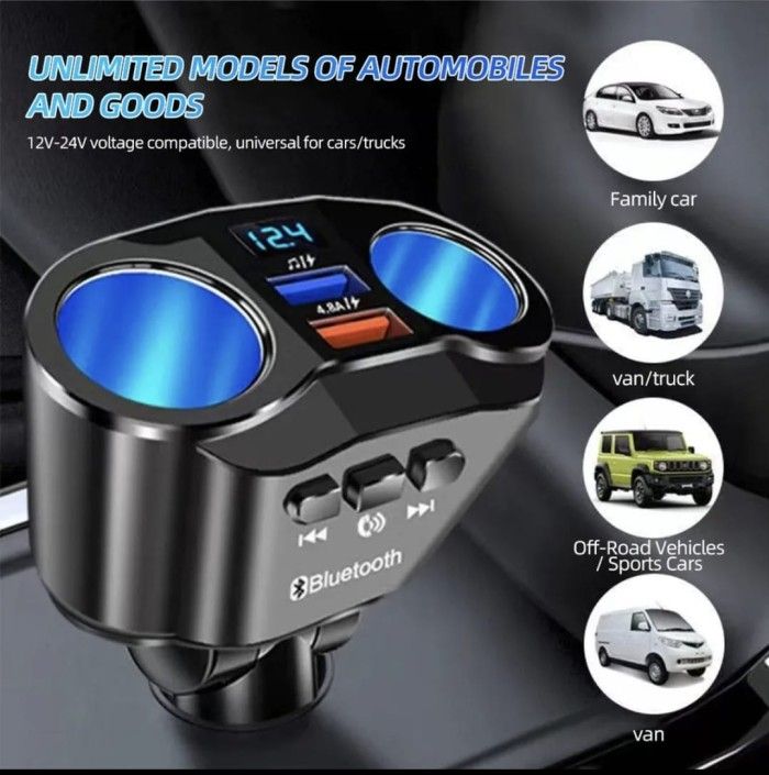 Lighter Car Charger 12V-24V Socket Splitter Mp3 Bluetooth Fm Modulator