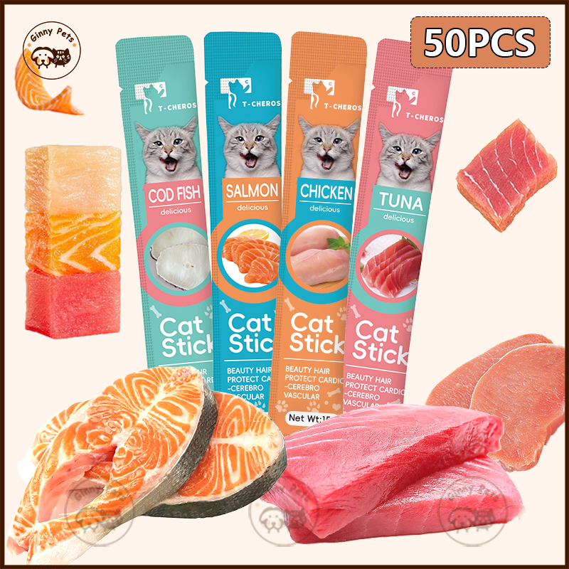 50PCS Cemilan Kucing Cat Strips Hewan Peliharaan Treats Creamy Kucing Treats Ready Stock
