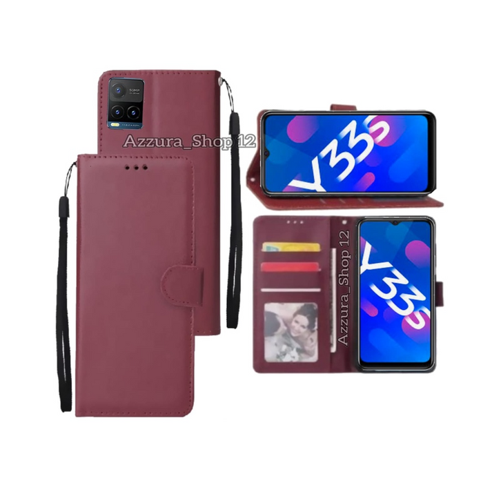 (TERMURAH)VVO Y33S Case Flip Casing Hp Flip Wallet Soft Case Dompet Flip Cover Leather Premium (Kulit Sintesis)