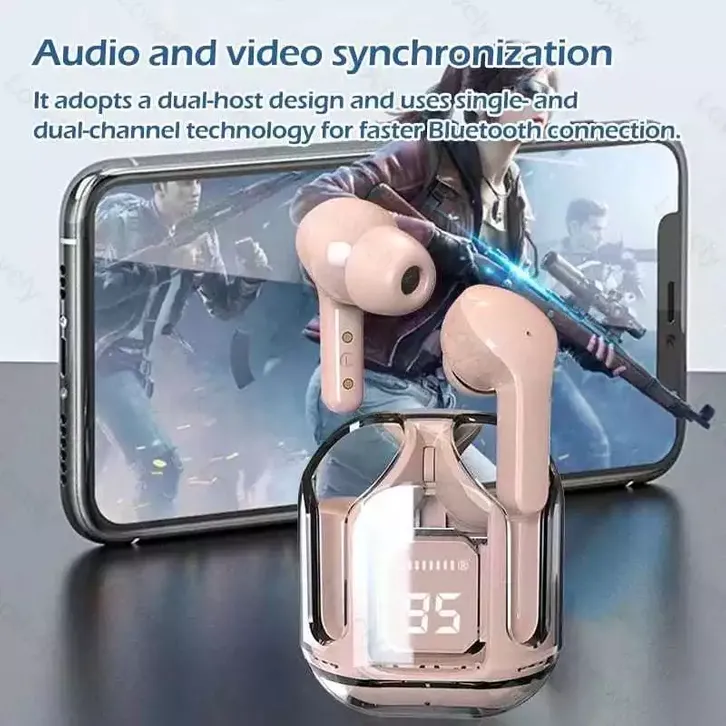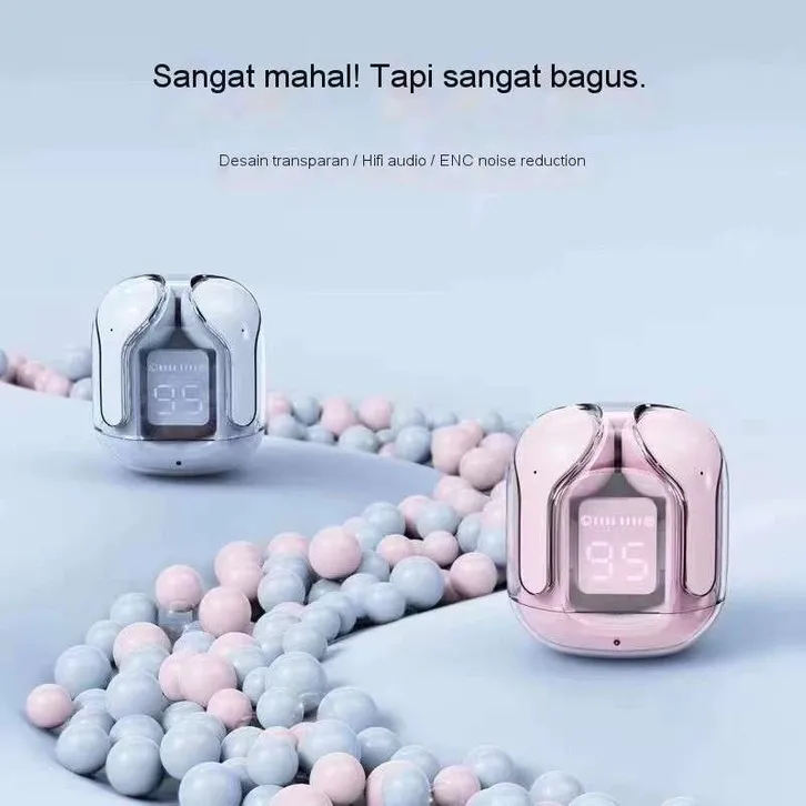 Headset bluetooth TWS Air31 wirelles LED display tranparan Hifi sound
