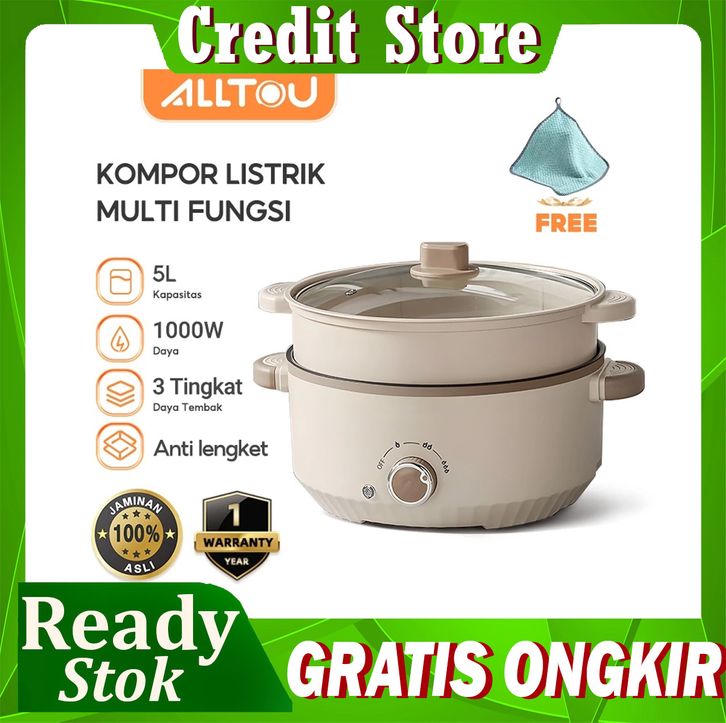 CREDIT STORE ALLTOU Panci Listrik Serbaguna 3L/5L Multifungsi Steamer Panci Listrik Serbaguna Anti Lengket