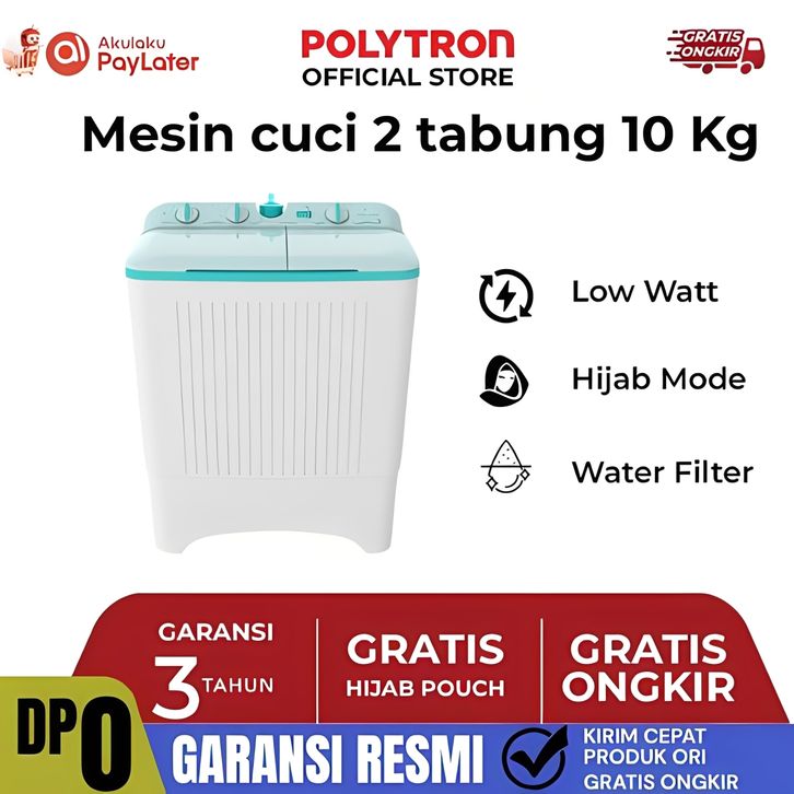 POLYTRON Mesin Cuci 2 Tabung Primadona Giant Warna Merah 7Kg 8Kg 9Kg 10Kg PWM 8072N Garansi Resmi