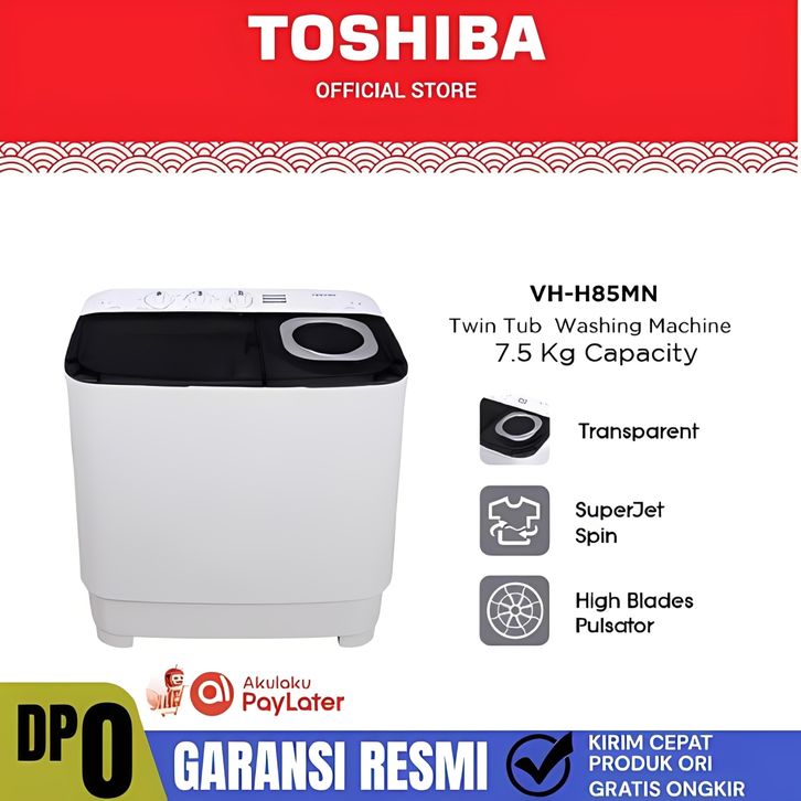 TOSHIBA Mesin Cuci 2 Tabung 7.5kg Model VH-H85MN Twin Tub Dengan Super Pengering Cepat Jet Spin