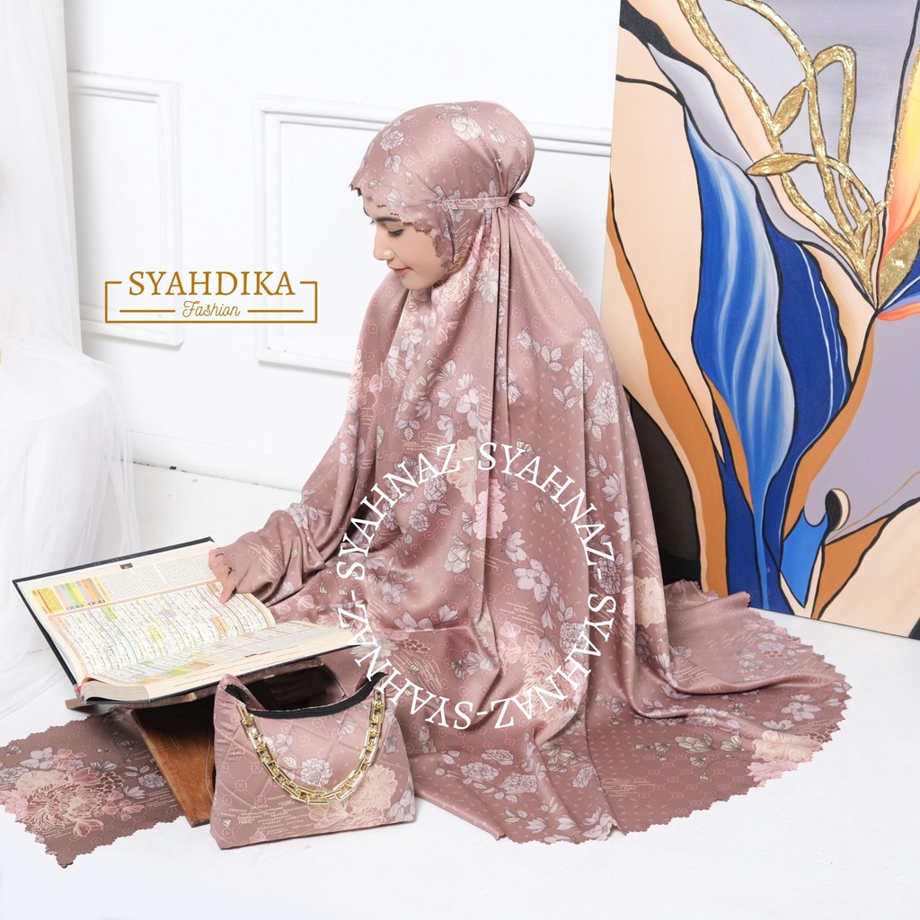 (FLASH SALE) Syahdika - Mukena Dewasa Silk Daily Motif Tas Premium Arsyila Series