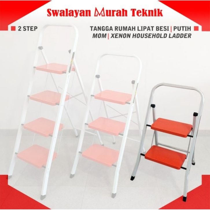 TANGGA RUMAH BESI LIPAT 2 STEP XENON MOM 2S HOUSE HOLD LADDER PUTIH 150KG