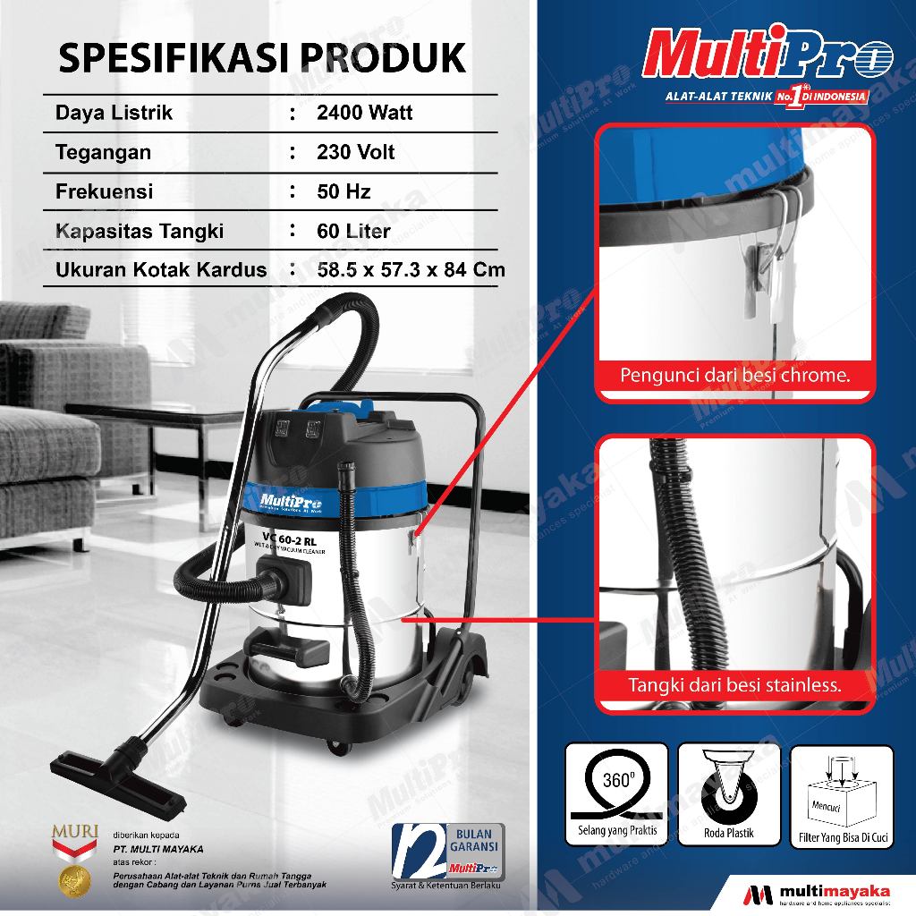 VACUUM CLEANER MESIN PENYEDOT DEBU BASAH DAN KERING VC 60-2 RL MULTIPRO