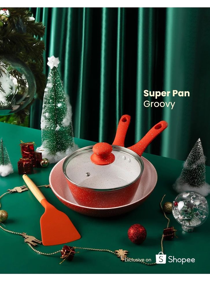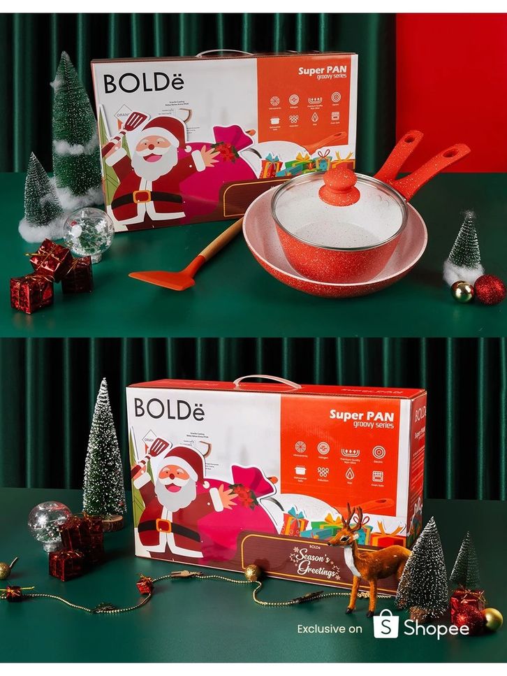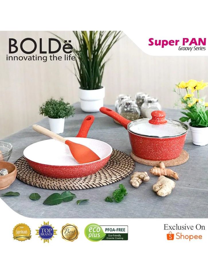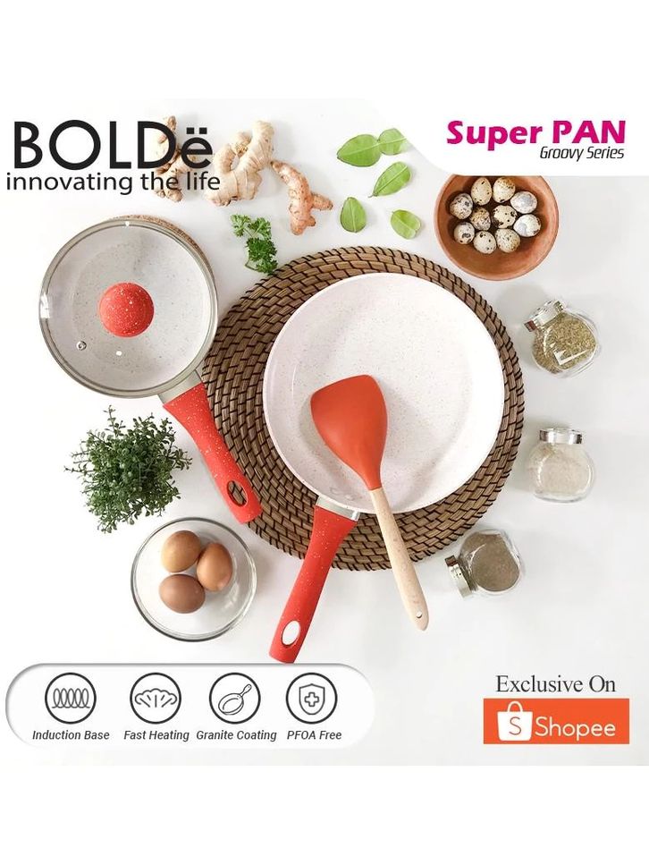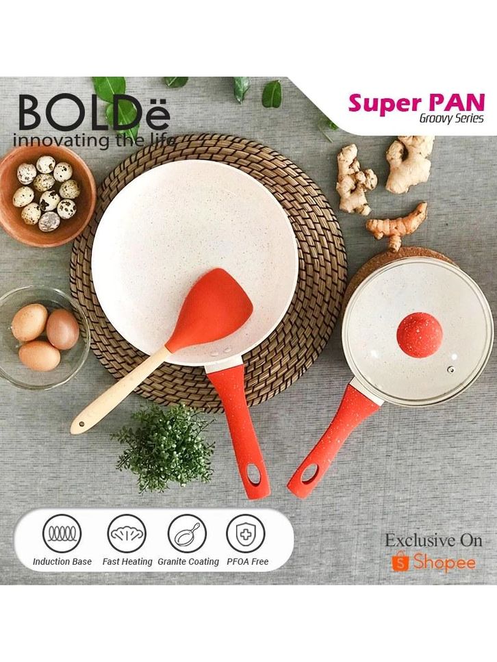 BOLDe Panci dengan Tutup Kaca + Wajan + spatula nilon / panci listrik / panci set anti lengket / panci presto