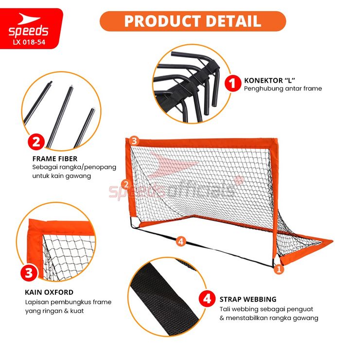 SPEEDS Gawang Jaring Lipat Goal Portable 180cm L XL XXL Indoor Outdoor Latihan Gol Soccer Football Sepak Bola 018-54