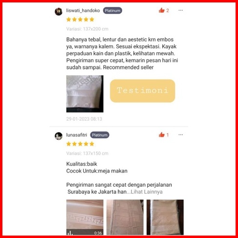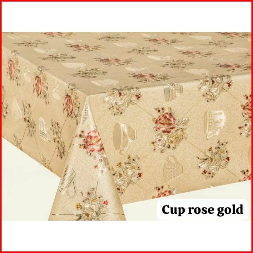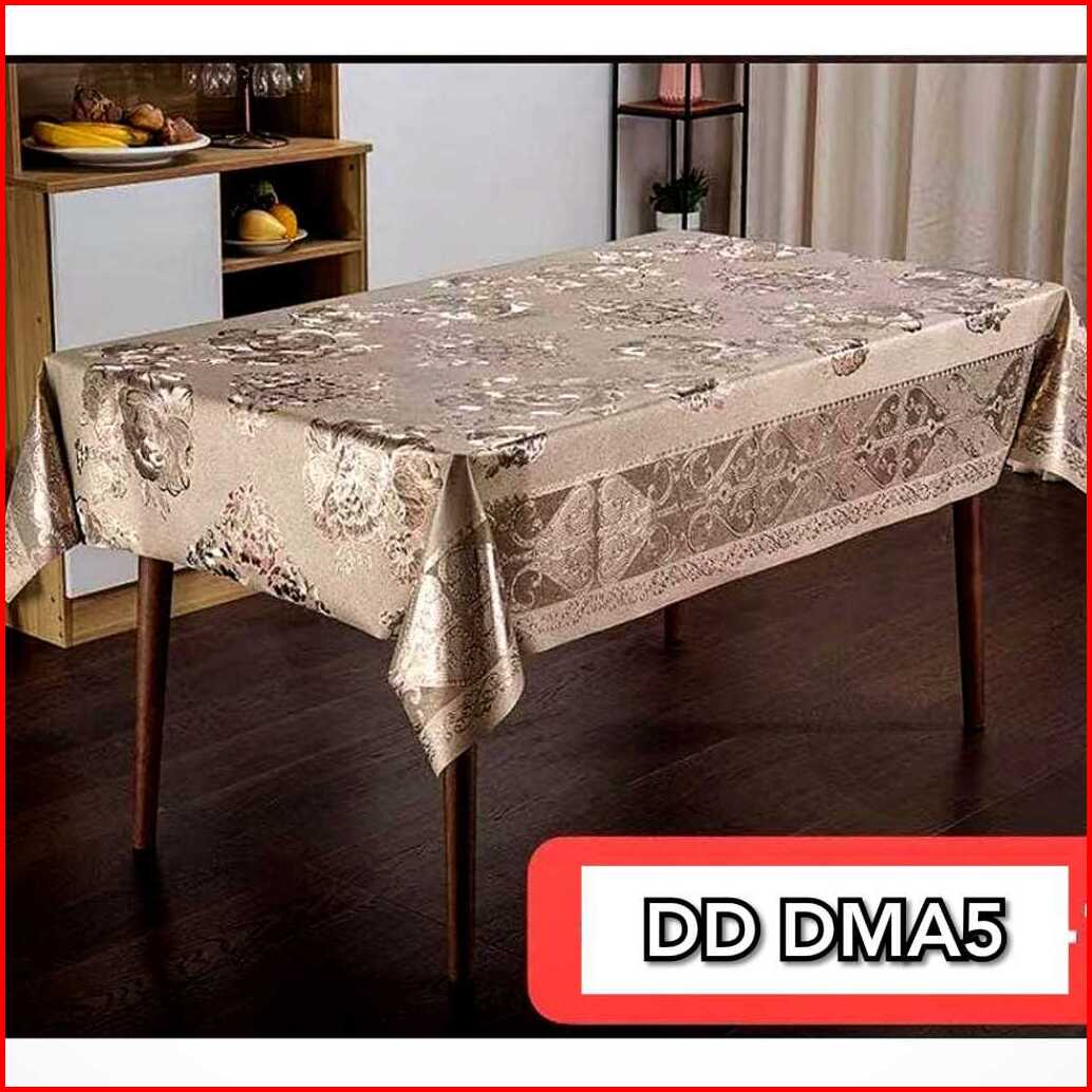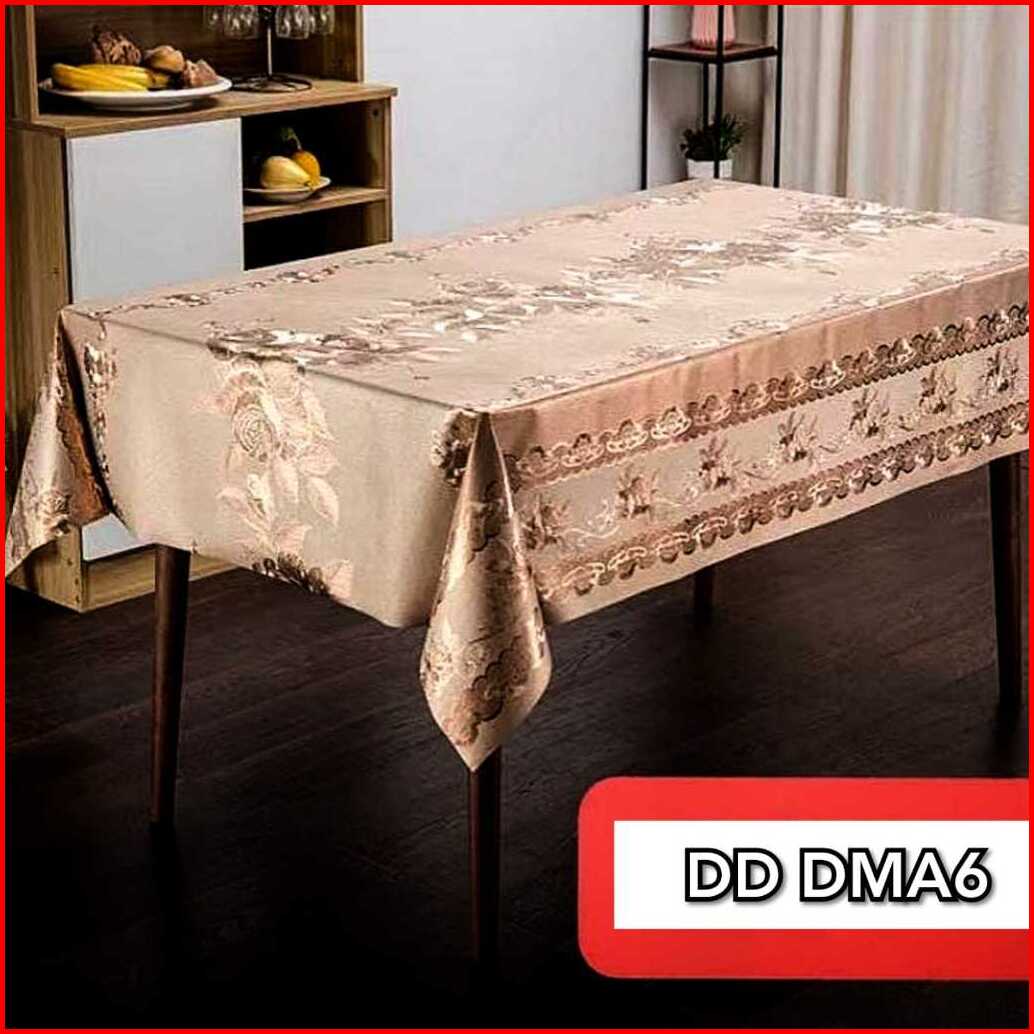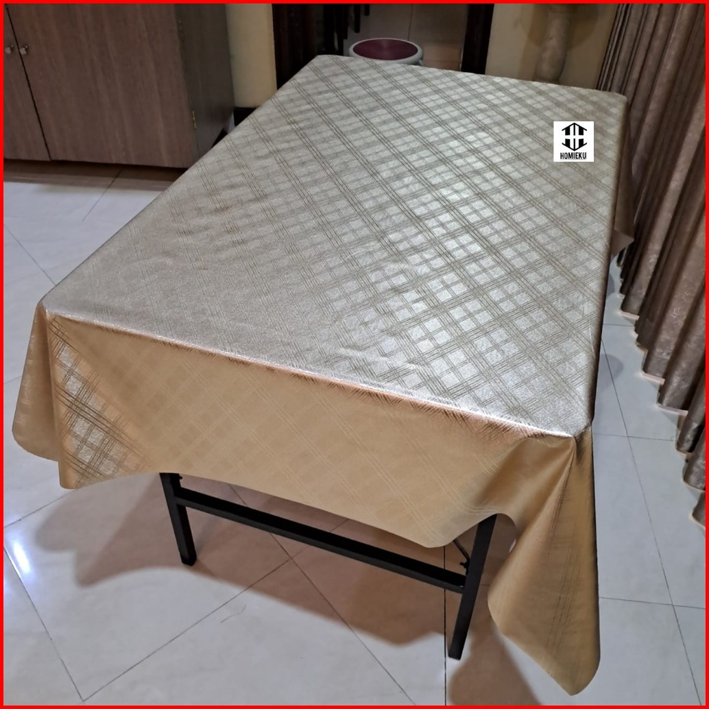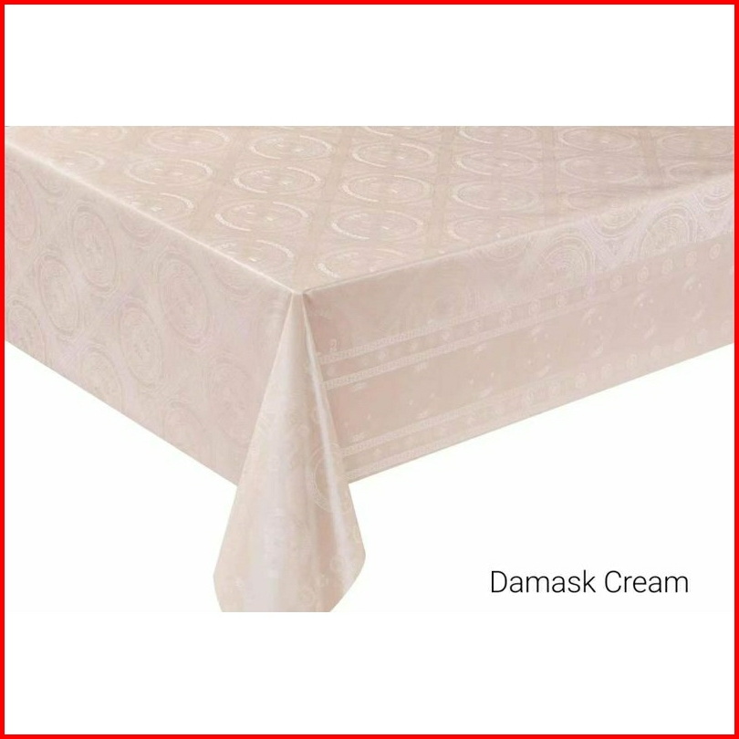Taplak Meja Makan Damask Krem Polos Emboss Anti Air Waterproof 4 6 8 10 Kursi