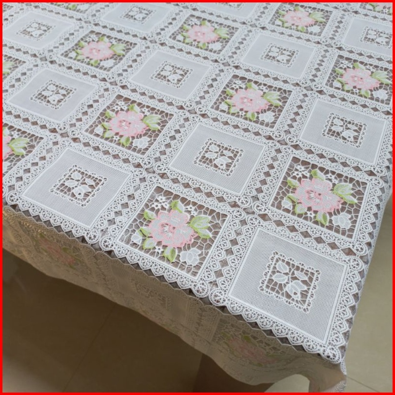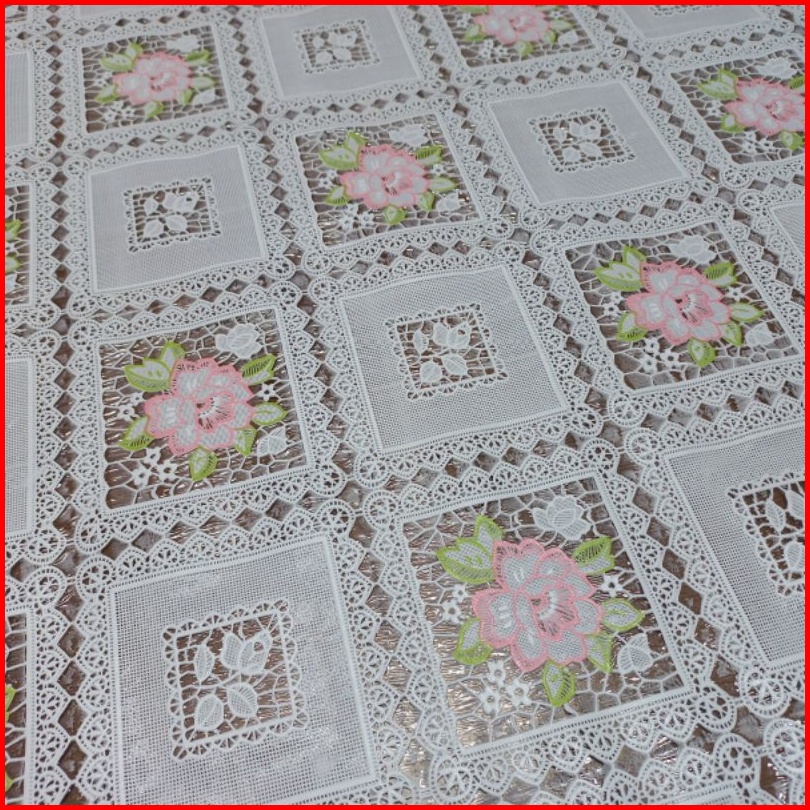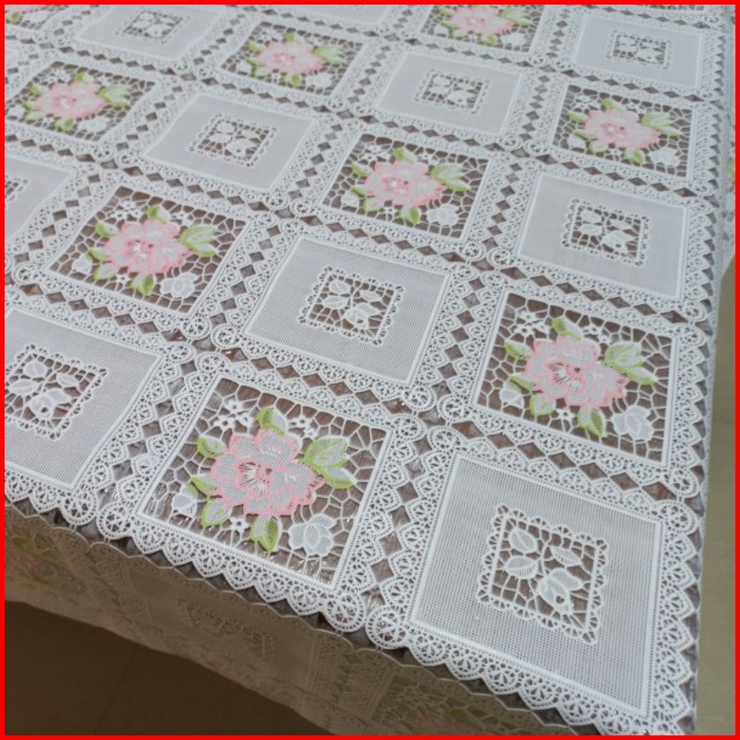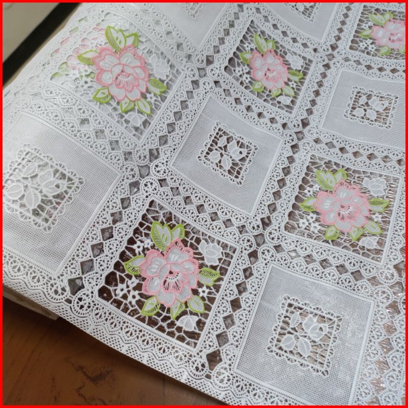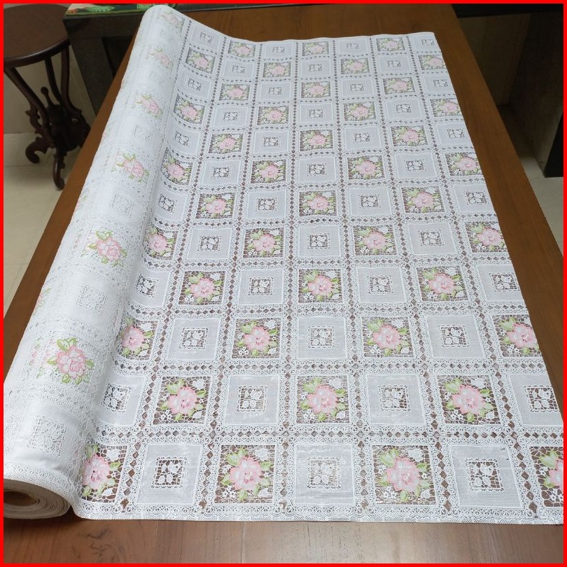 Taplak Meja Makan Plastik Meteran Motif Bunga Putih Pink Waterproof Anti Air