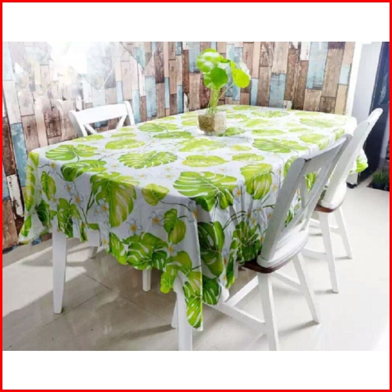 Taplak Meja Makan Rumbai Monstera Hijau 140x180 Cm