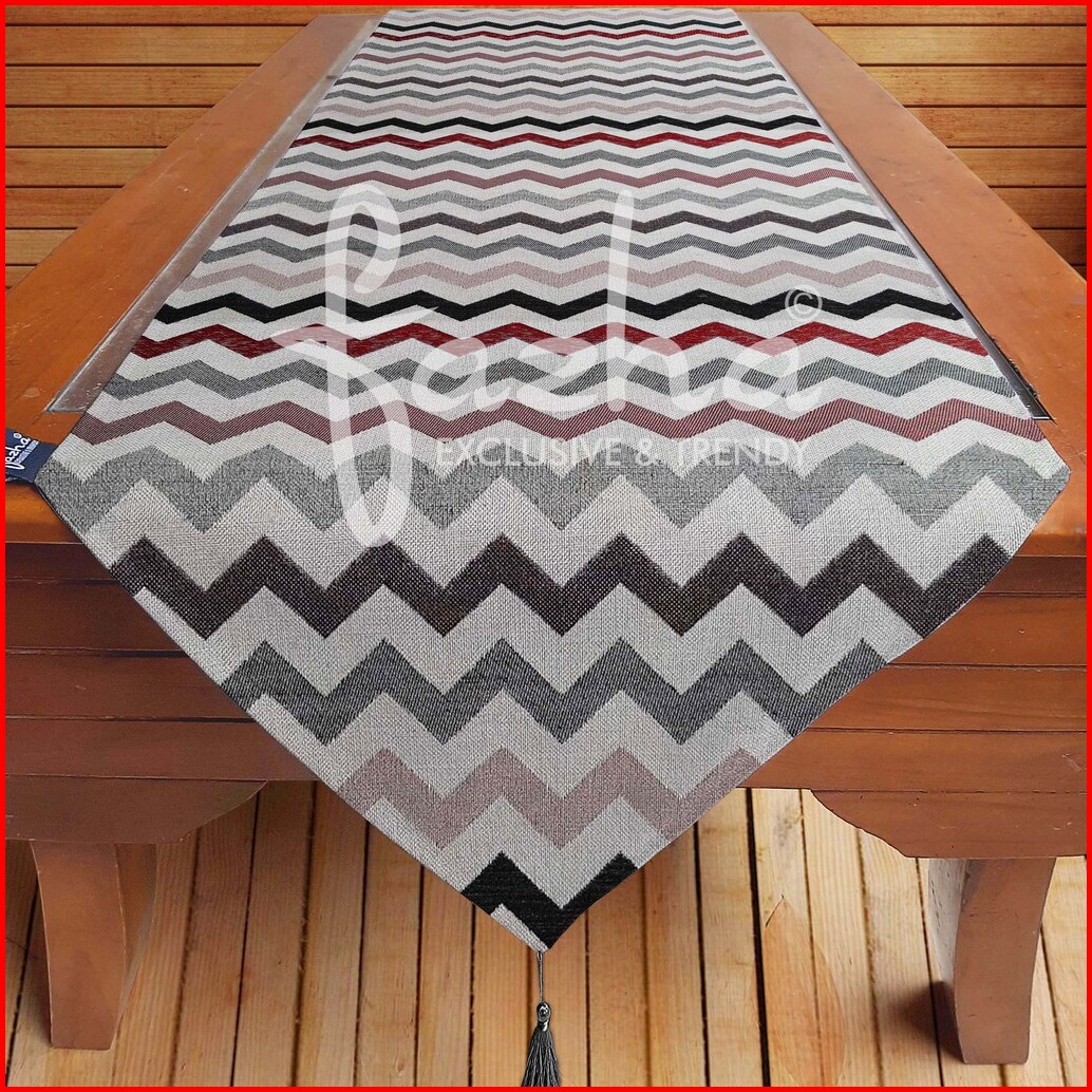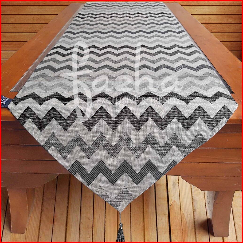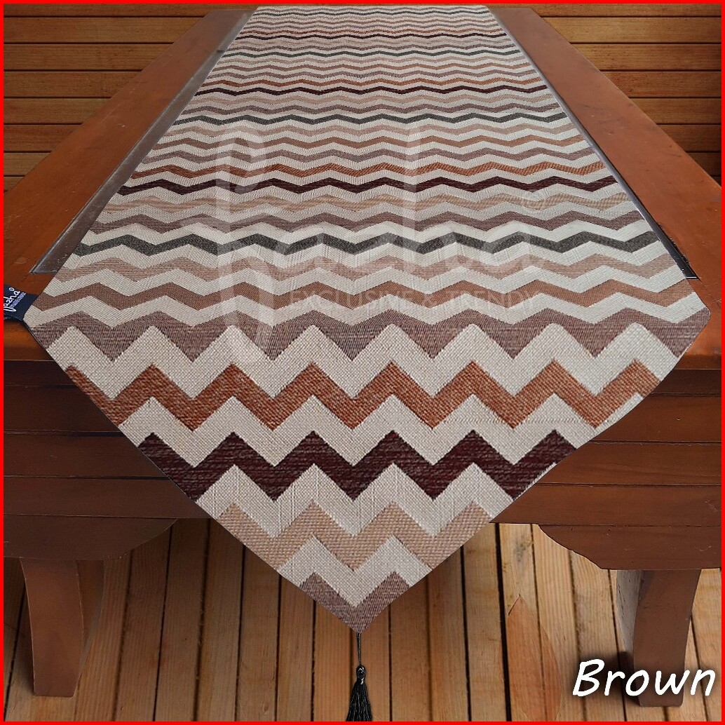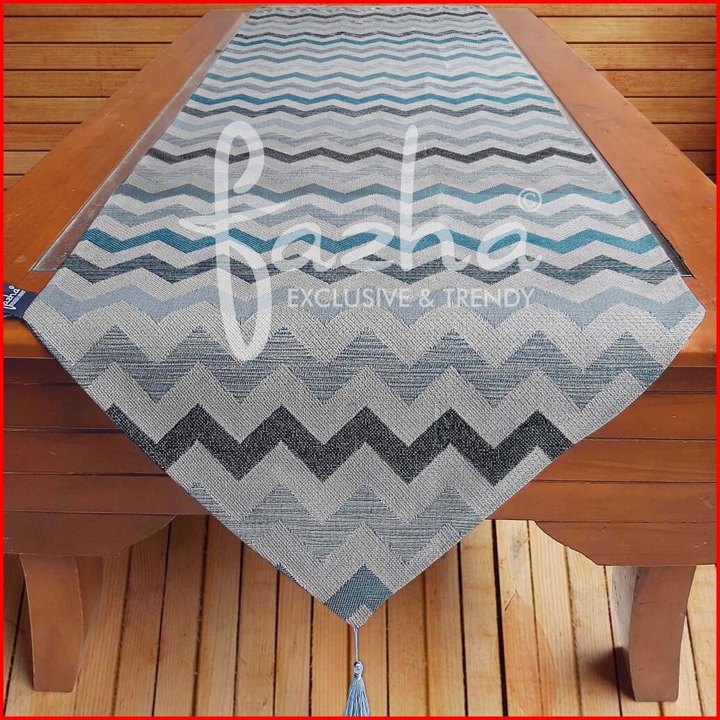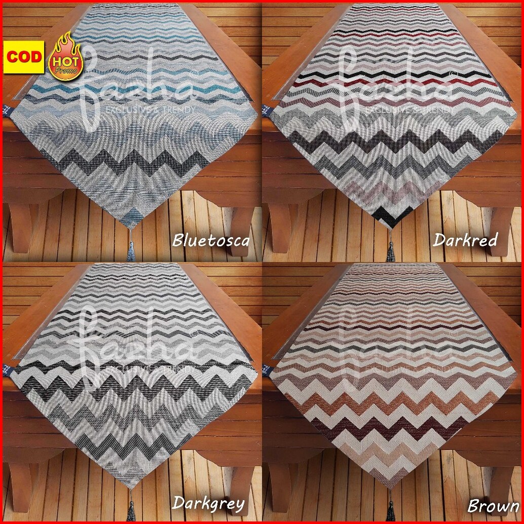 Taplak Meja Tamu Makan Modern Minimalis Fazha Mewah Cantik Elegant Motif Geomertis Warna Abu Coklat Merah Biru Hitam Tua