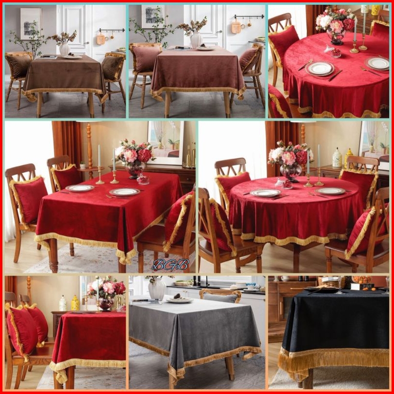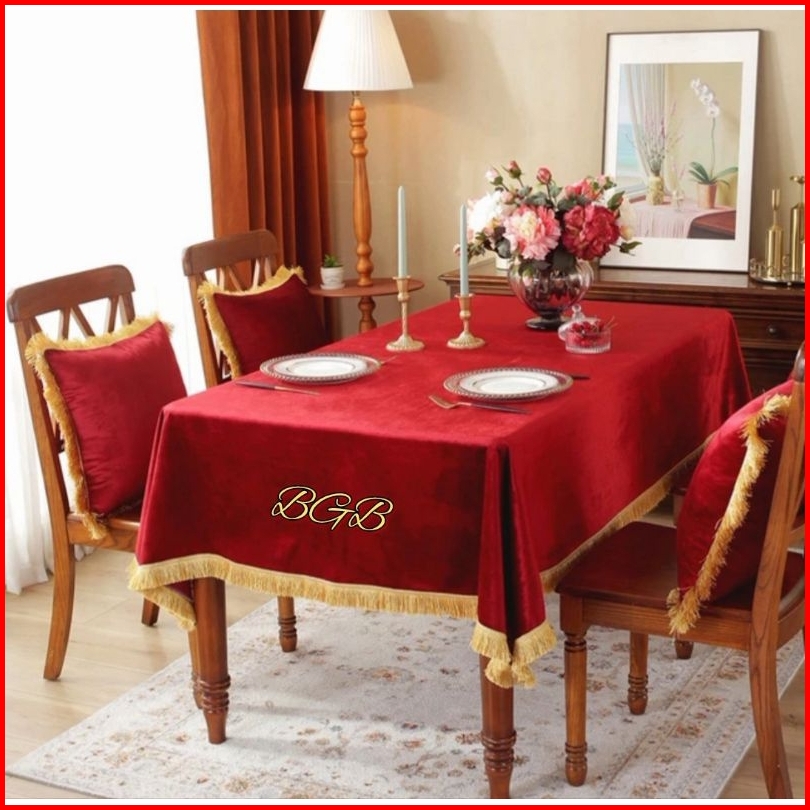 Taplak Meja Makan Rumbai Elegan