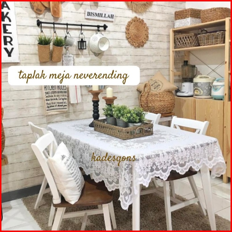 Taplak Meja Makan Persegi Panjang Untuk 4-6 Kursi Polyester Renda Classic