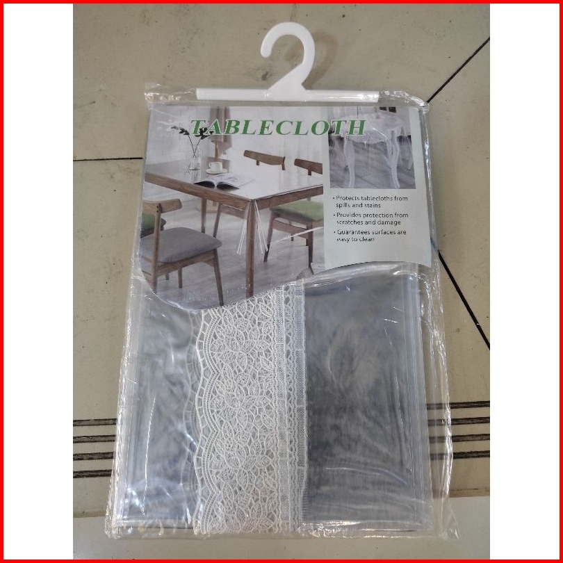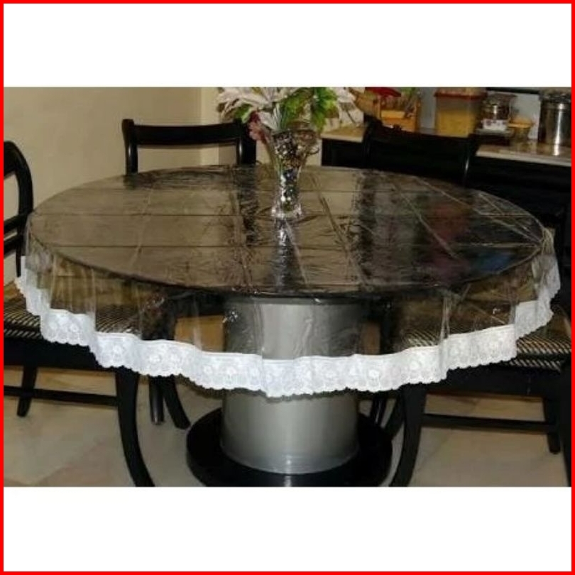 Taplak Meja Makan Bulat Bundar 6-8 Kursi Bening Transparan Mika Anti Air Waterproof Renda Import