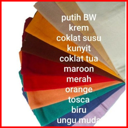 Broken White, Krem, Coklat Susu, Coklat, Grey, Blue, Baby Pink, Kuning Kunyit, Hijau Muda, Lilac Ungu Muda