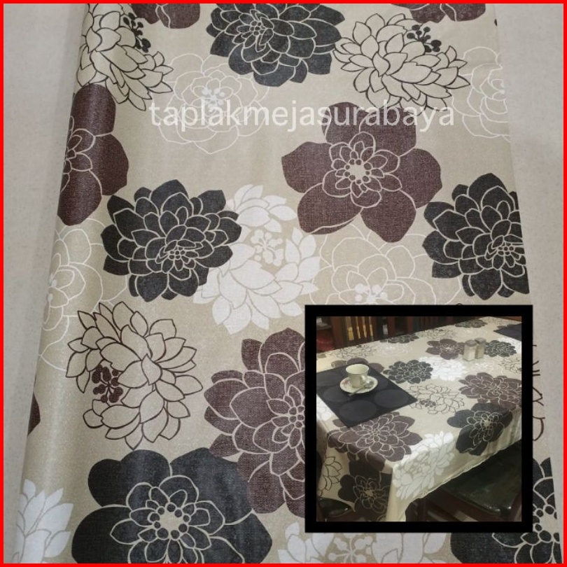 Taplak Meja Makan Plastik Custom Meteran 4 6 8 10 12 Kursi Anti Air Waterproof Cream Krem Coklat Simple Minimalis