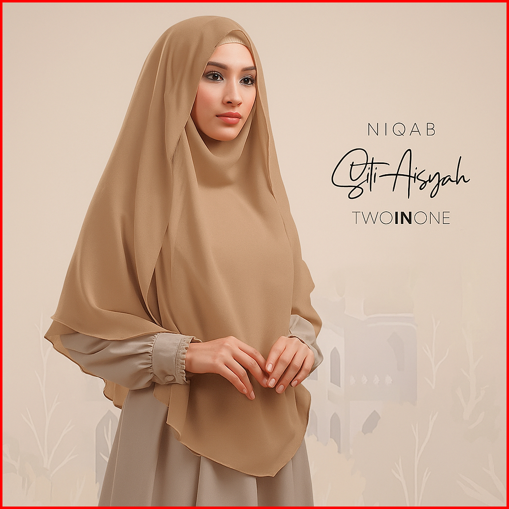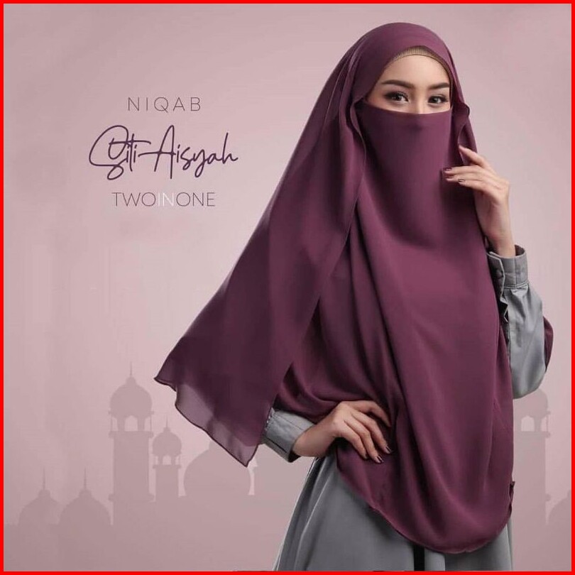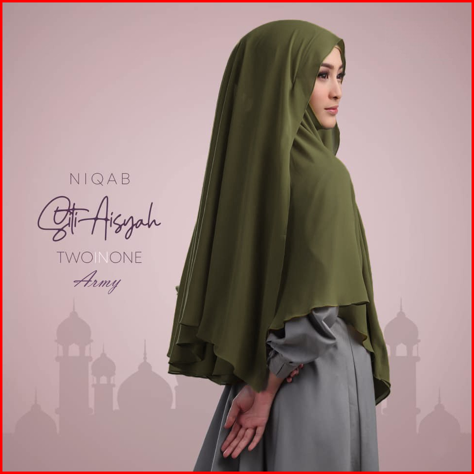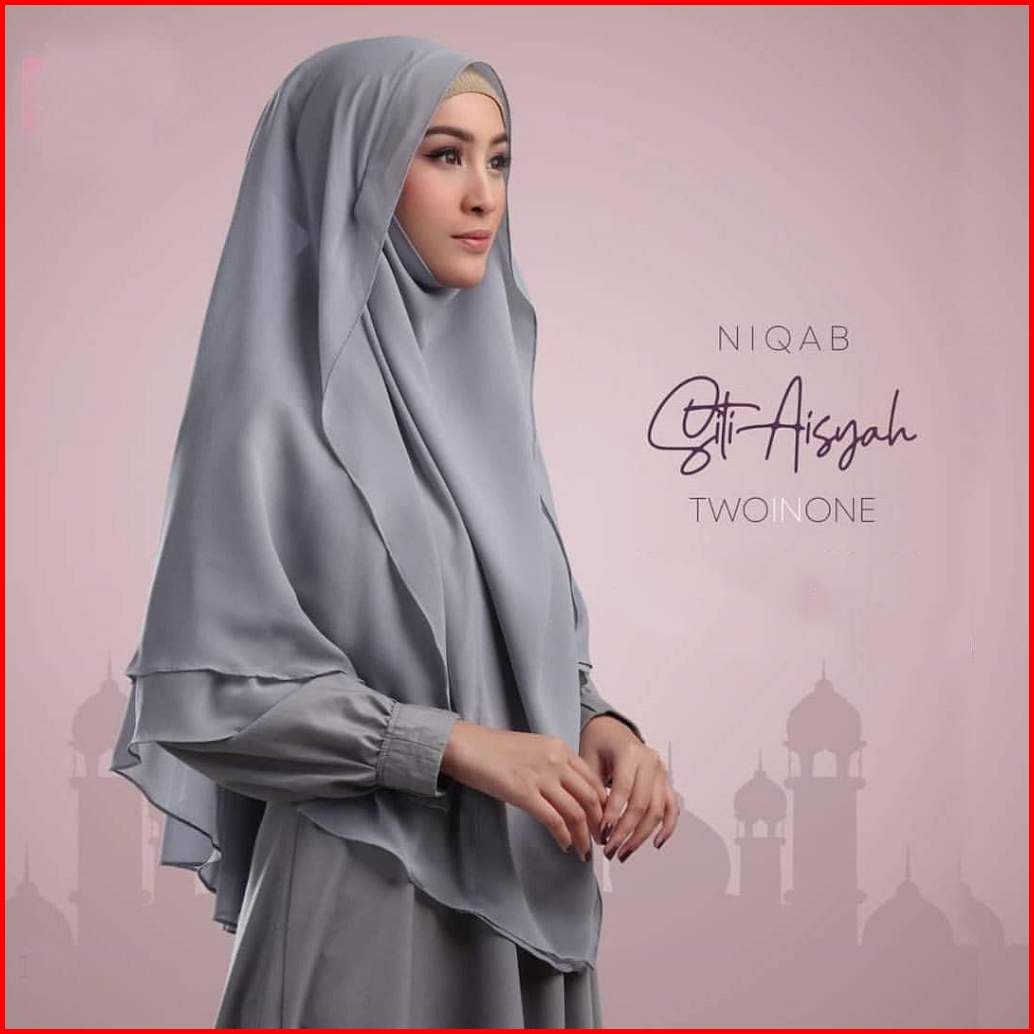 Jilbab Khimar Syari Jumbo 2in1 - Hijab Ceruty Non Pet 2 Layer Cadar Lepas Pasang Tali
