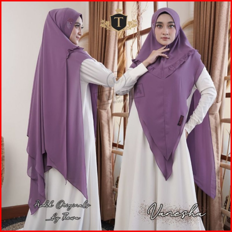 Thewa - Hijab Khimar Vanessa Rempel Jumbo 2 Layer Kerudung Ceruty Babydoll