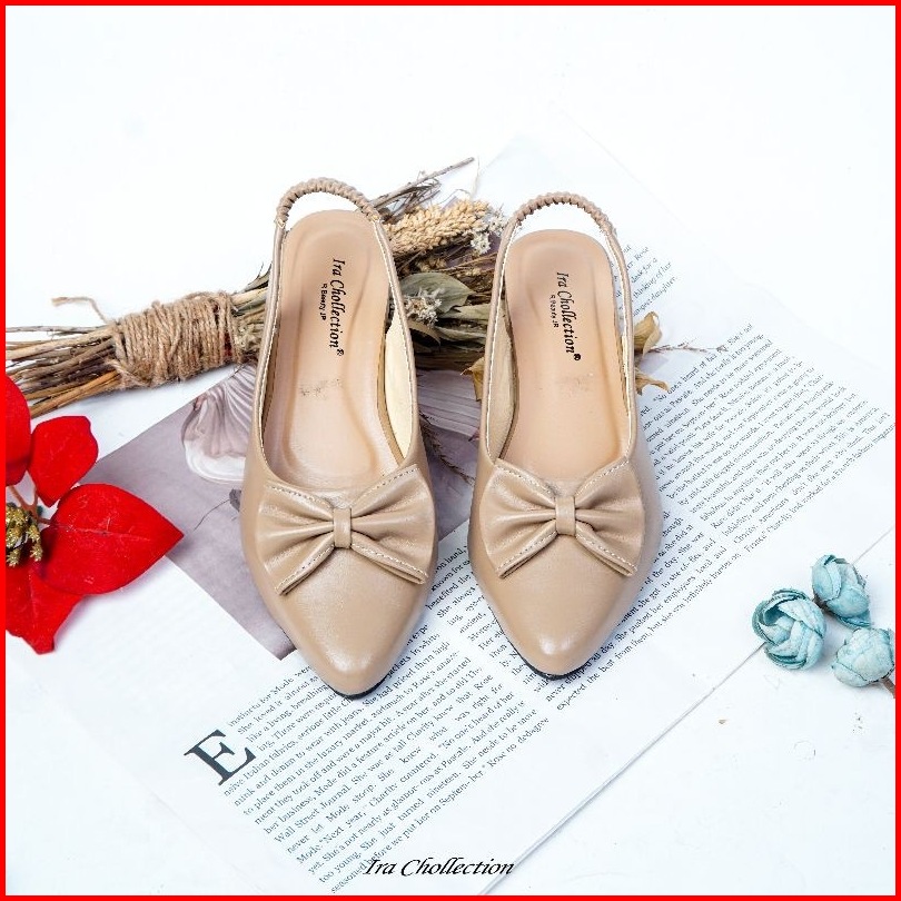 Sandal Heels Wanita Tali Belakang Pita Hak 3cm