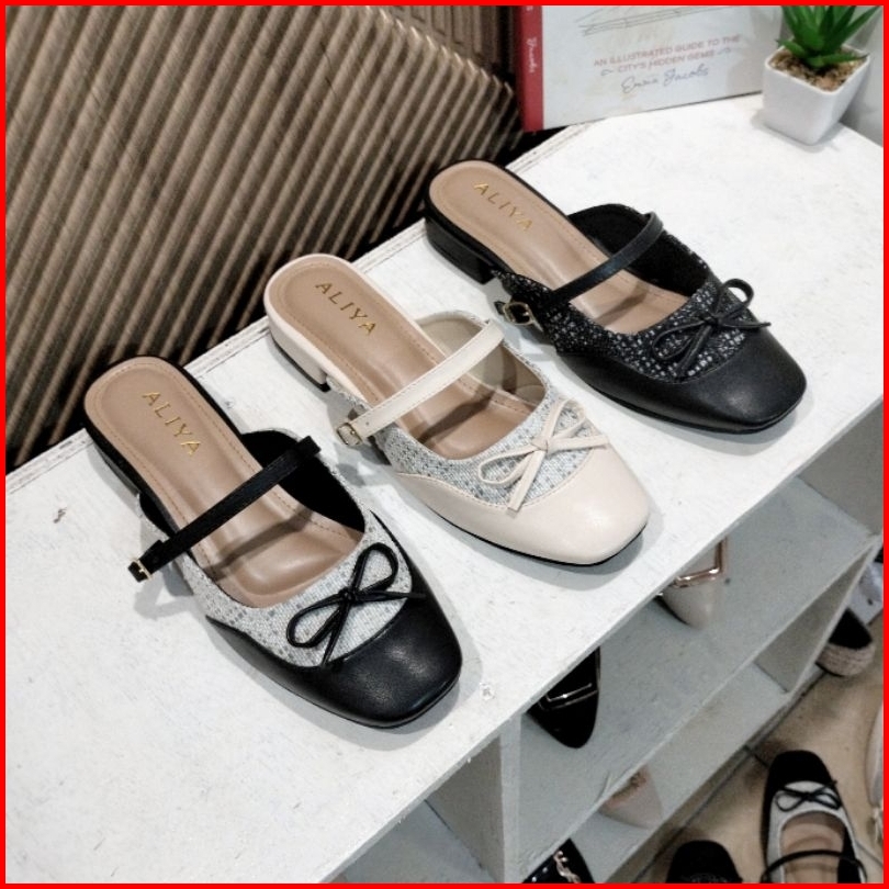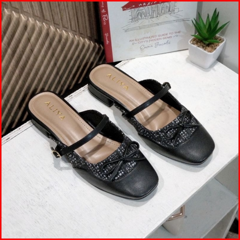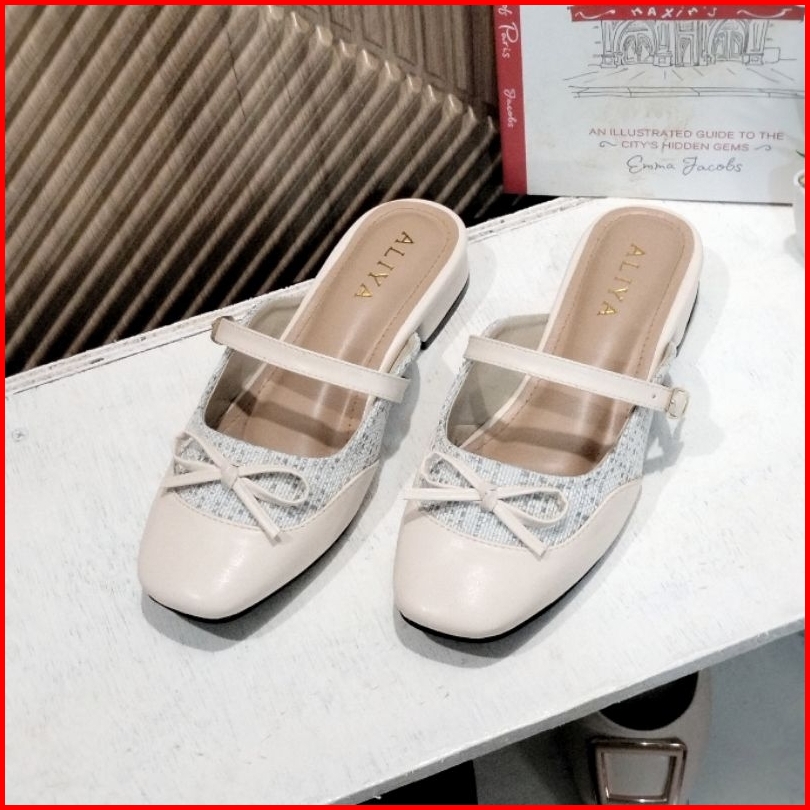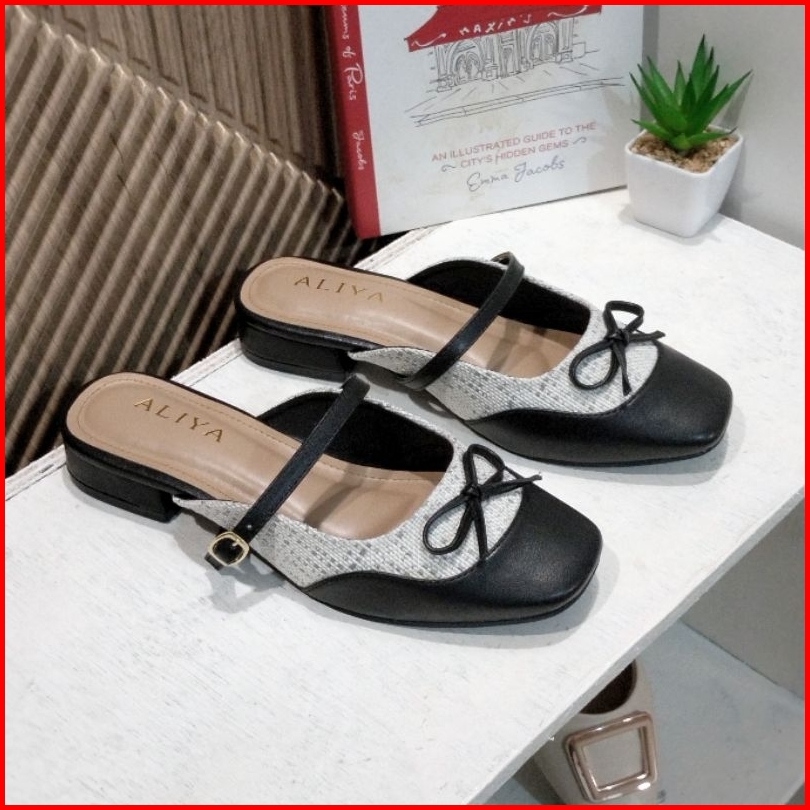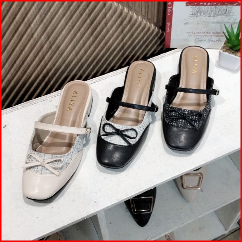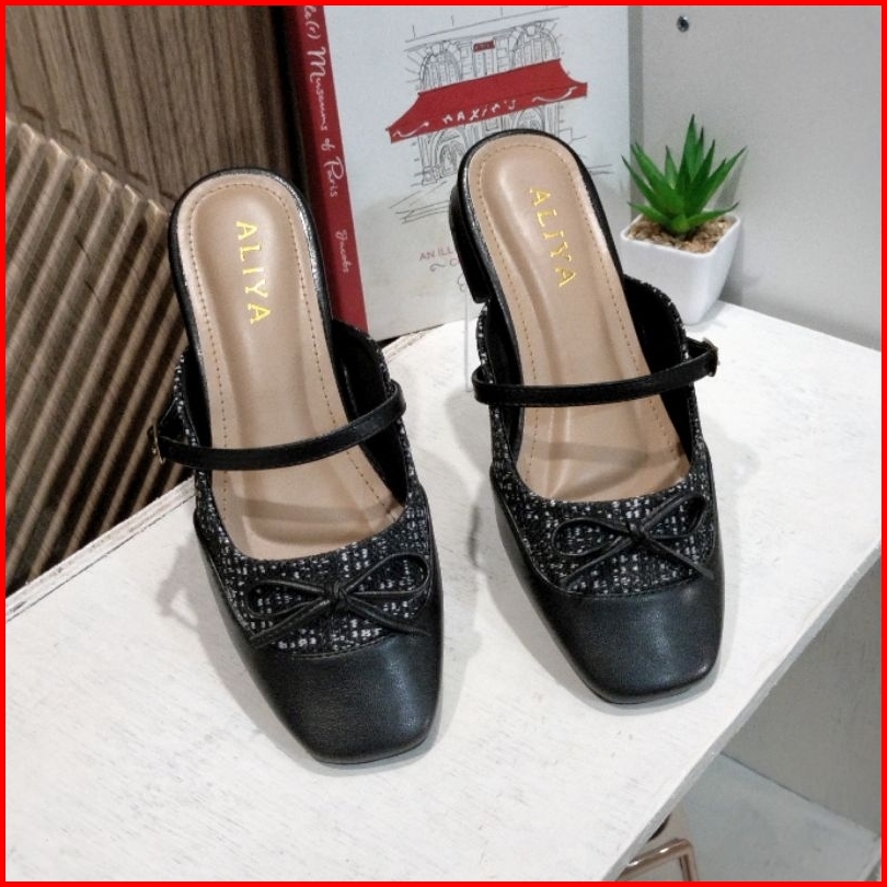 Aliya Yomie Sandal Mules Wanita Sandal Slop Unik Heels Hak 3cm