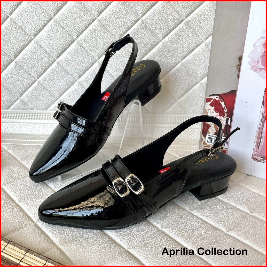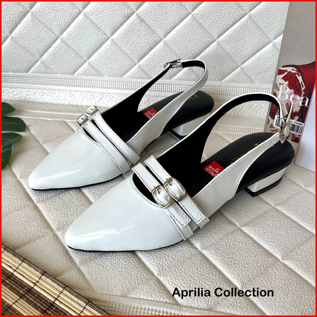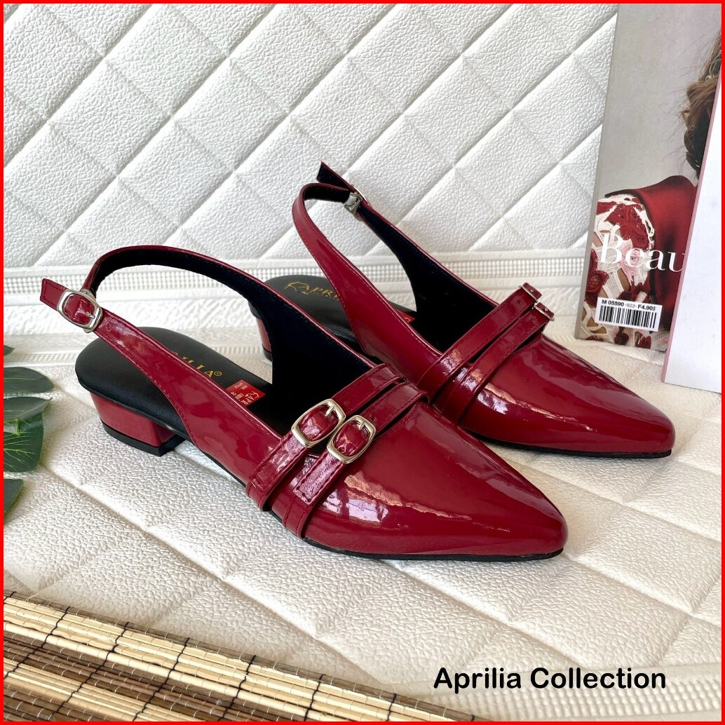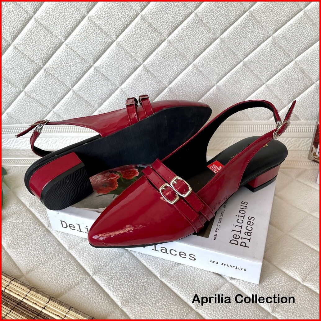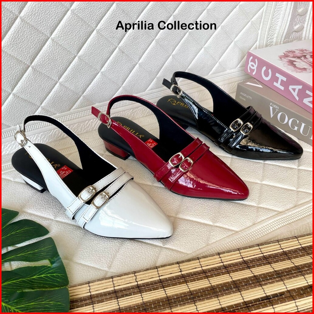 Aprilia Sepatu Slop Tali Gesper 3cm Sandal Mules Slip On Terbaru Anti Licin Sepatu Kerja Formal Wanita Glossy Mules Wani