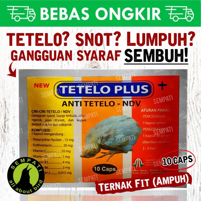 TETELO PLUS ANTI TETELO NDV OBAT SNOT AYAM DARA BEBEK TAMASINDO NDVTT