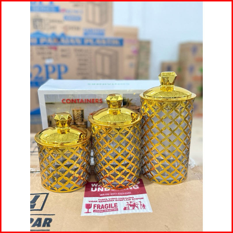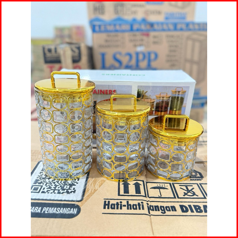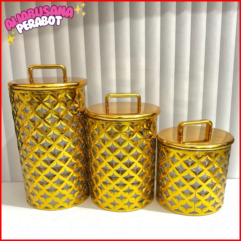 Toples Mewah Akrilik 3pcs Set Toples Kue Mewah Toples Makanan Estetik Toples Kedap Udara Toples Set
