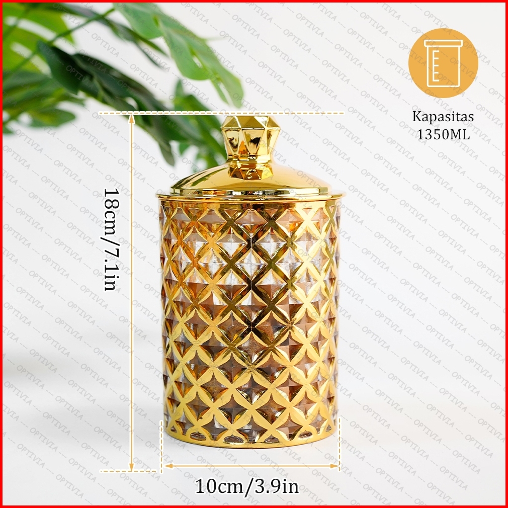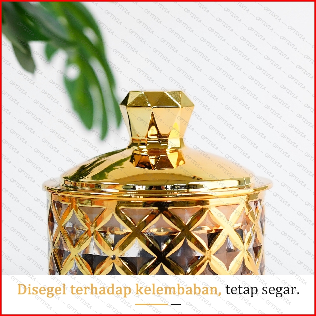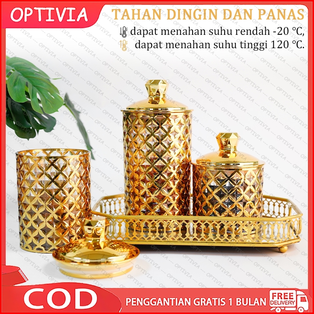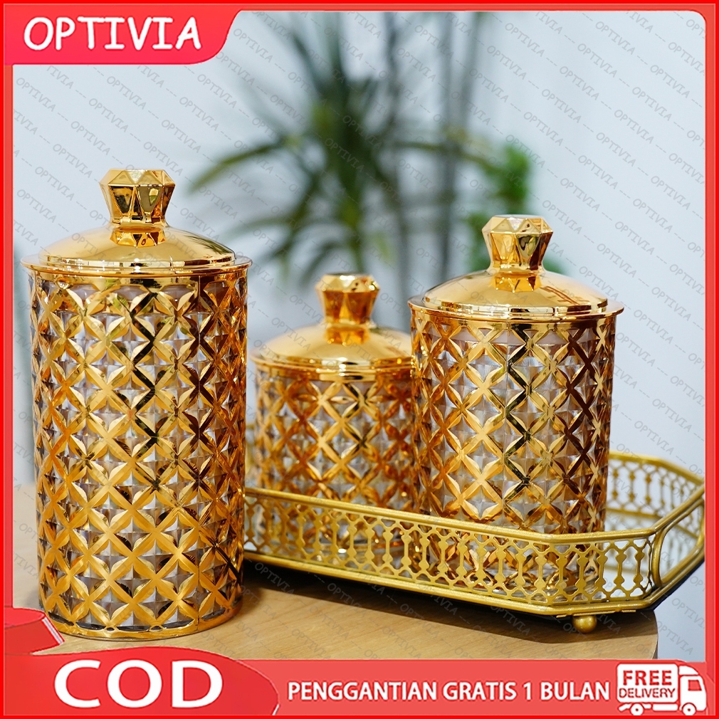 Optivia Toples Aklirik Kedap Udara Toples List Mewah Nordic Cahaya Gaya Mewah Besi Tempa Kaca Cermin Dasar Tray