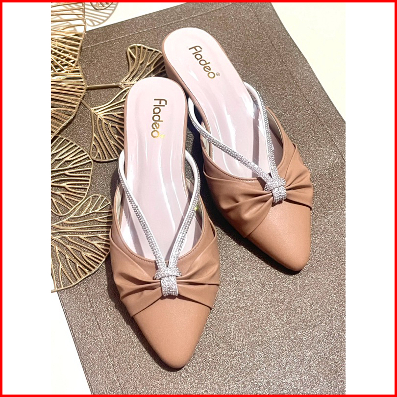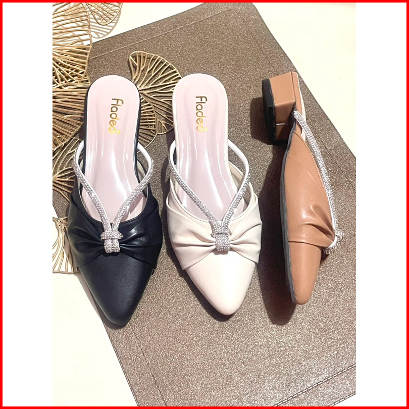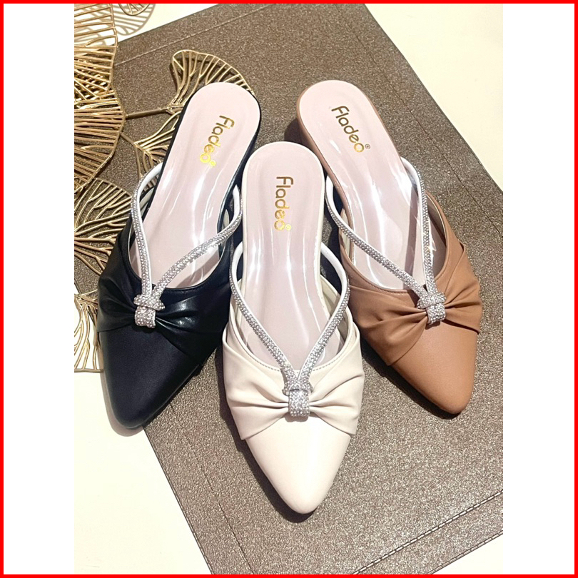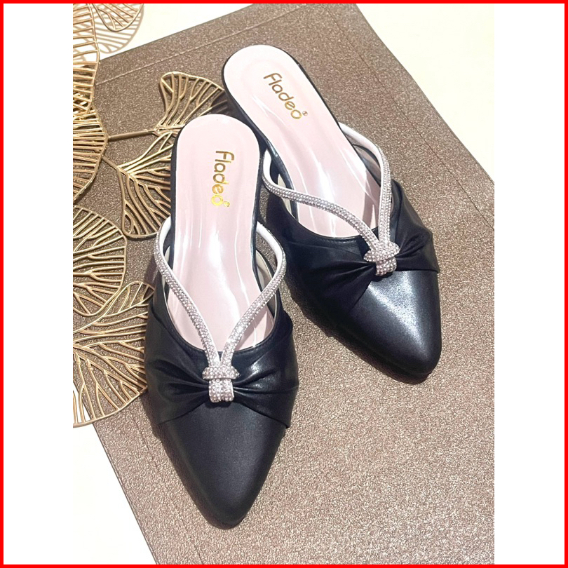 Sandal Wanita Terbaru Mules Heels Fyo Permata Cantik 3cm