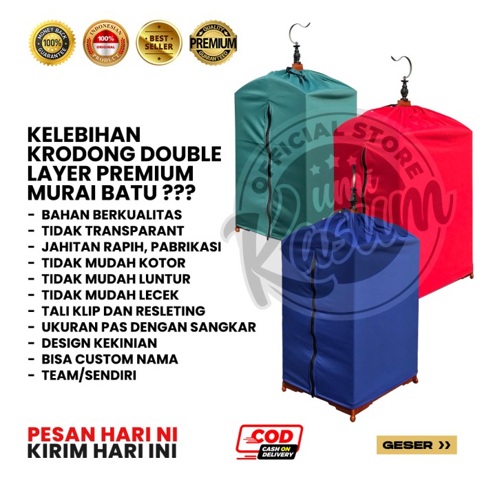 KERODONG POLOS SANGKAR KOTAK DOUBLE LAYER UMI KASUM | KRODONG KOTAK - HITAM, NO 1