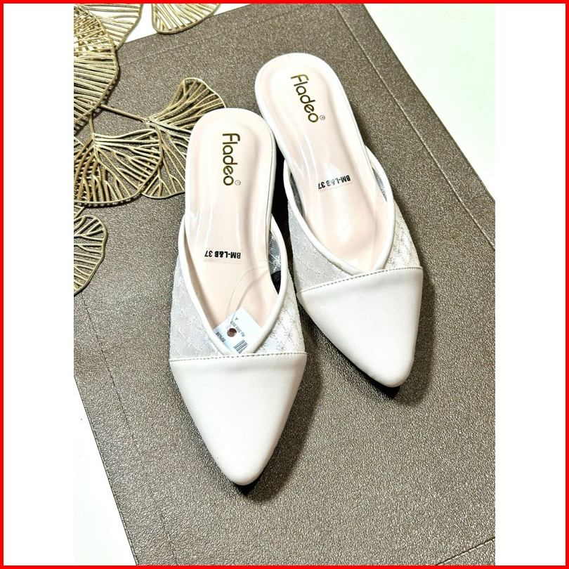 Sendal Wanita Terbaru Mules Heels Fyo Brukat Polos 3cm